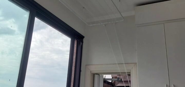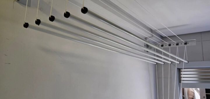 Nesse apartamento, o cliente tinha dois varais de teto com aproximadamente cinco varetas individuais em cada varal. Com o tempo, as cordas foram se desgastando e o funcionamento já não era mais o ideal....