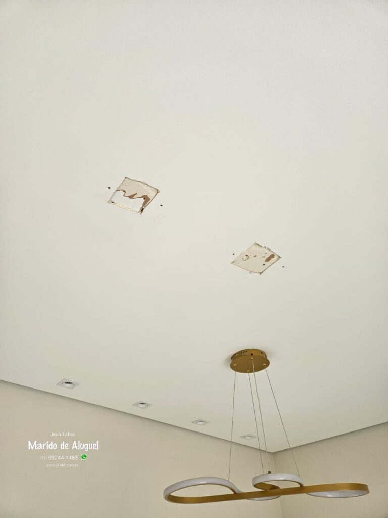 Já no caso do pendente de LED, não existia um ponto de energia no local onde o cliente queria instalar, que era bem em cima da mesa. Por isso, precisei localizar o caminho da fiação no teto e fazer alguns cortes no gesso para conseguir puxar um novo ponto de energia até o local desejado.