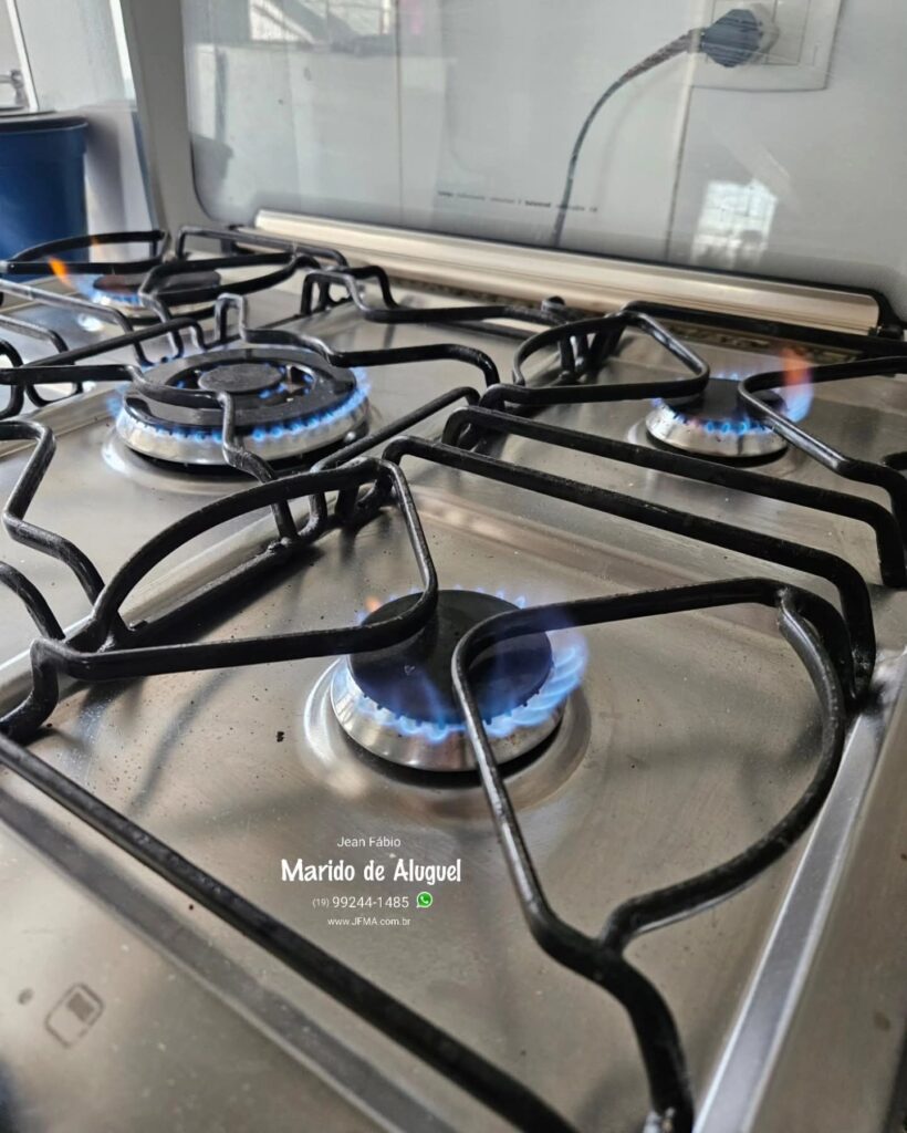 Todo o processo foi feito com cuidado, seguindo as especificações corretas para garantir segurança, chama adequada e funcionamento perfeito do fogão.