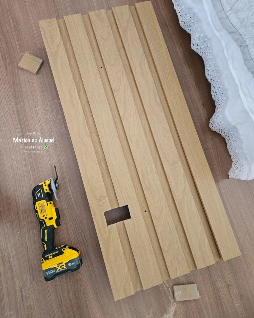 Instalação de Cabeceira de Cama em Madeira Ripada