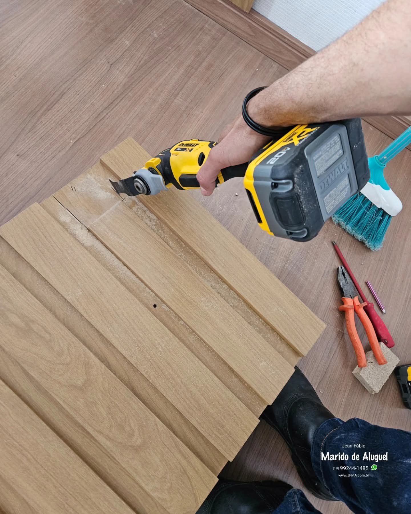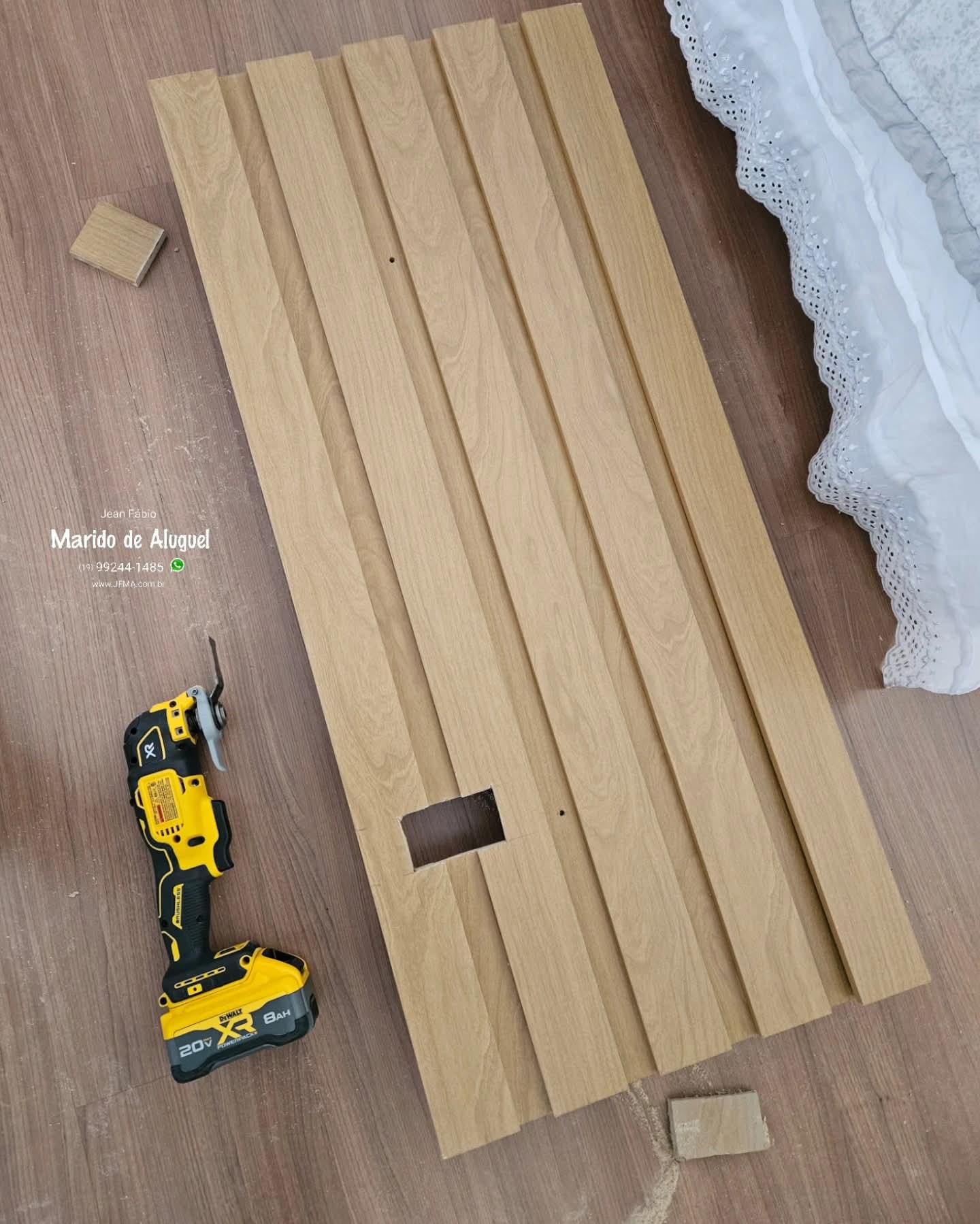 A cliente me chamou para instalar uma cabeceira de cama de casal em madeira ripada.O modelo é fixado diretamente na parede, mas tinha um detalhe importante: as tomadas ficariam tampadas, e a ideia era não perder o uso delas.Então fiz o recorte certinho na madeira, exatamente onde ficam as tomadas. Depois disso, fiz a fixação da cabeceira na parede e reposicionei as tomadas por cima da madeira, tudo bem alinhado e com acabamento correto.No final, a cabeceira ficou instalada do jeito certo, com as tomadas funcionando normalmente e um visual bonito, sem improviso. Aqui o serviço é feito com capricho!