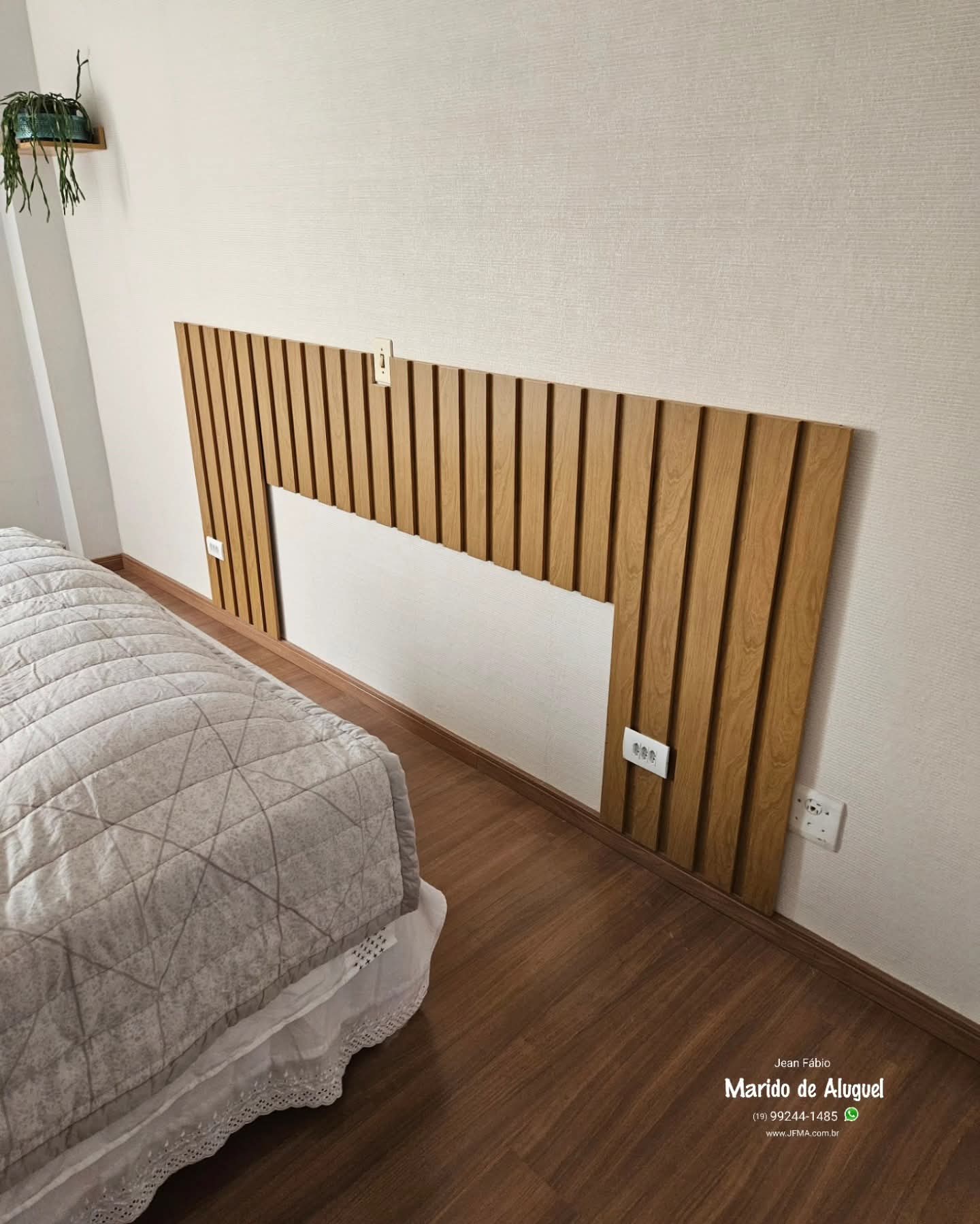 Instalação de Cabeceira de Cama em Madeira Ripada