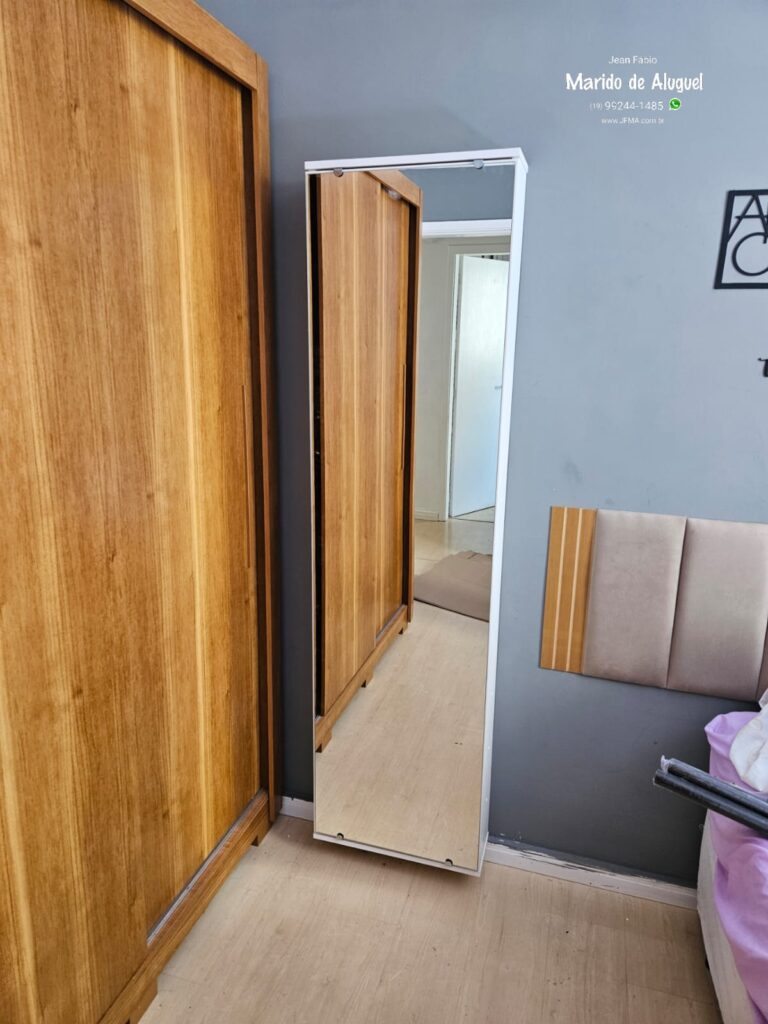Após a instalação, conferi o funcionamento da porta com espelho e o encaixe de todas as peças, deixando tudo certinho.
