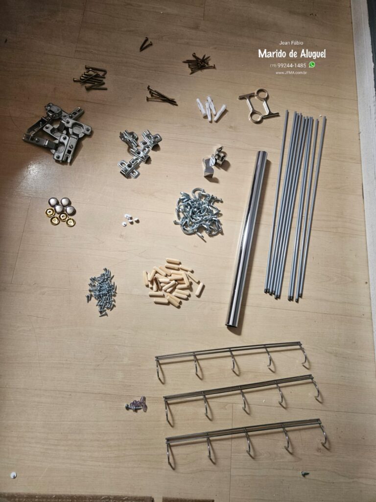 Primeiro fiz a montagem completa da estrutura do móvel. Depois realizei a fixação na parede, garantindo que ficasse bem alinhado, firme e seguro para o uso diário.