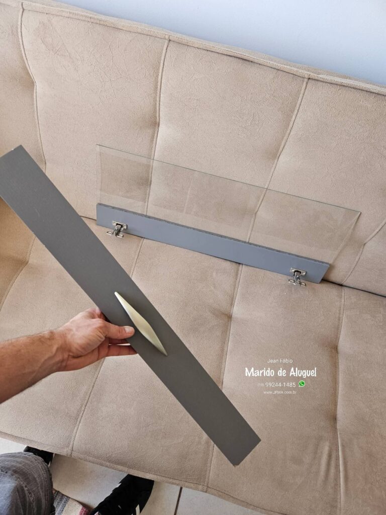 O vidro foi encomendado novamente na vidraçaria e, com silicone próprio, fiz a colagem com todo cuidado, garantindo firmeza e alinhamento.