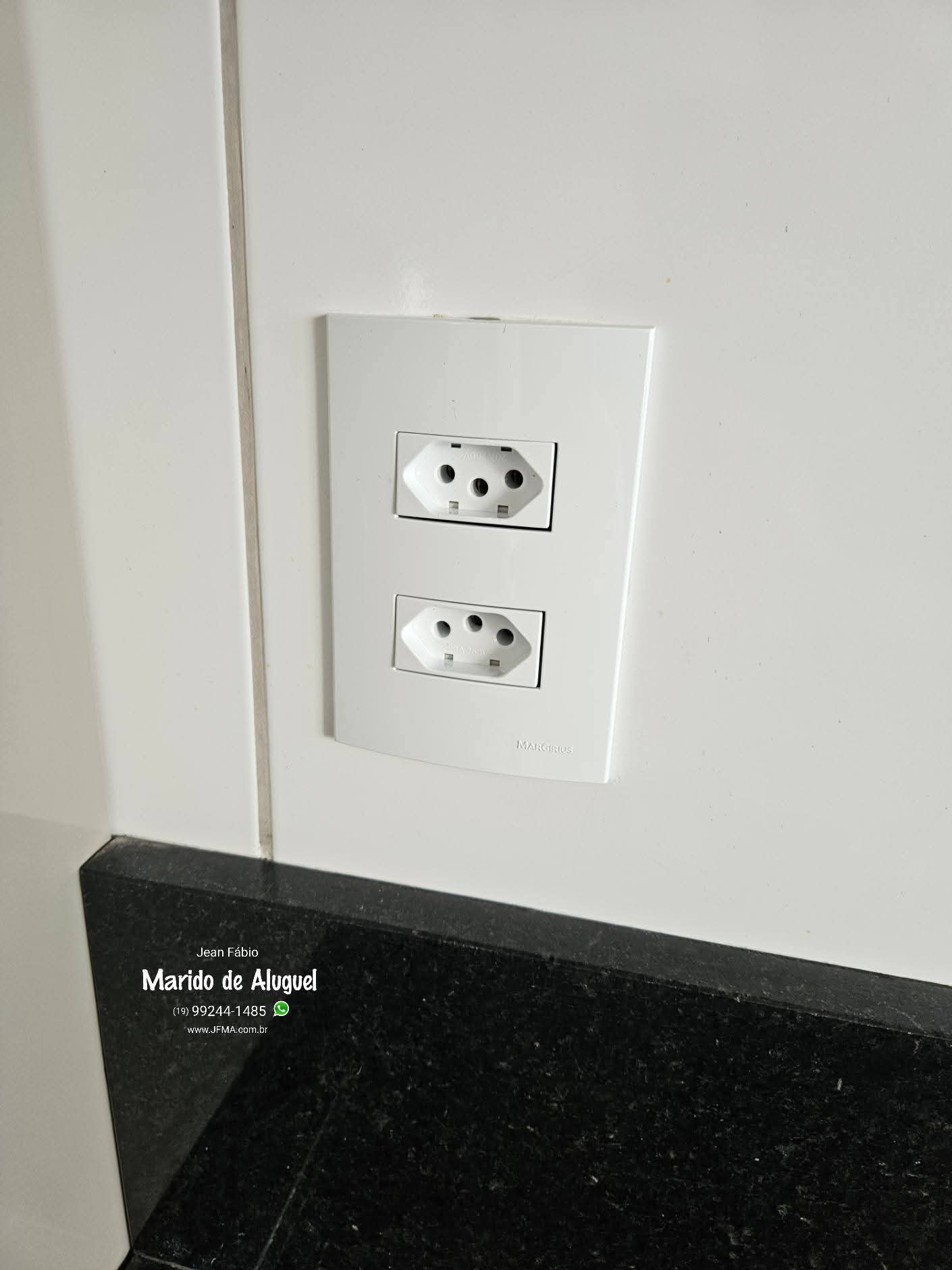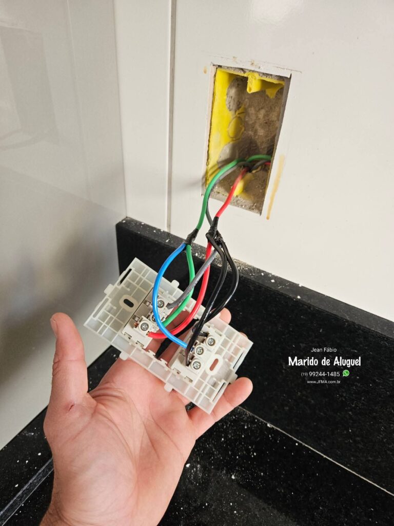 Realizei a substituição da tomada de 10A por uma de 20A, garantindo o encaixe correto e seguro para o uso do micro-ondas.