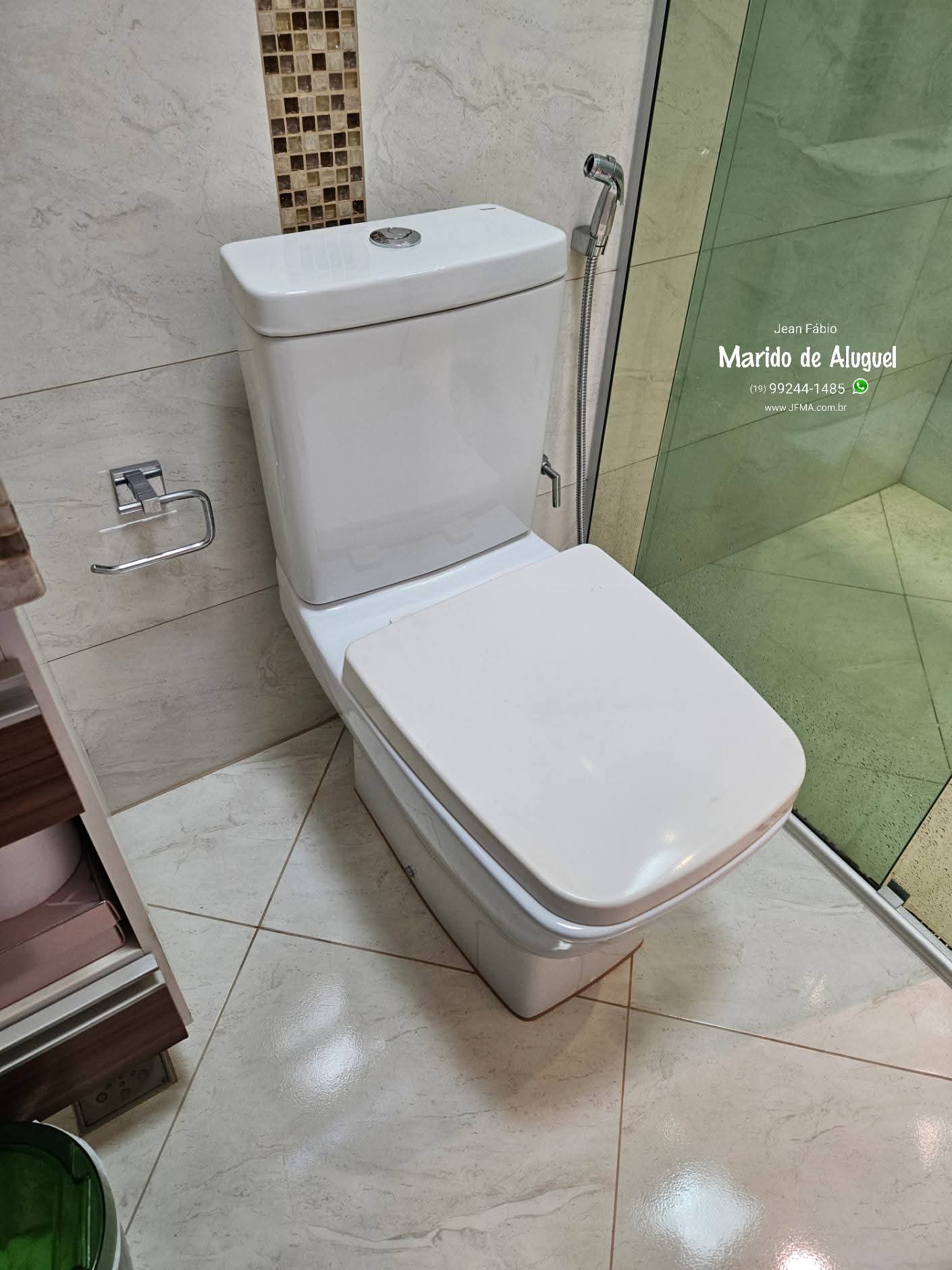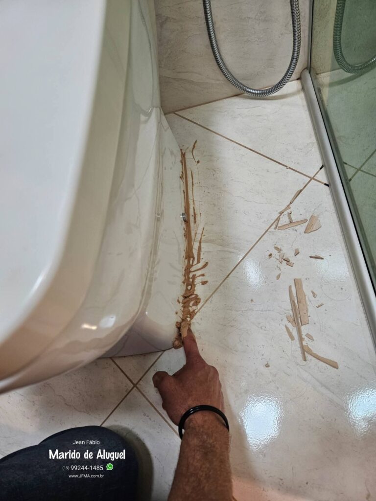 A cliente estava preocupada porque o rejunte do vaso sanitário tinha se soltado, deixando o vaso meio solto. Fui até a residência e reforcei os parafusos de fixação, garantindo que o vaso ficasse bem firme! Depois, apliquei o novo rejunte na base para vedação. Esse cuidado garante mais segurança, evita infiltrações e deixa o banheiro com um visual limpo e bem cuidado.