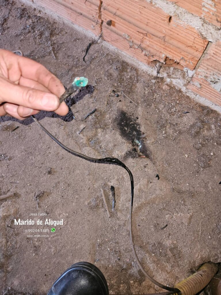 Subi até o forro para verificar a fiação e encontrei o problema: o cabo estava derretido e rompido justamente na emenda. Essa falha causou o superaquecimento e impediu o funcionamento adequado do chuveiro.