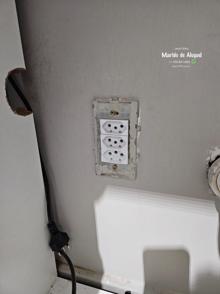 Nesse local, já existiam tomadas instaladas, porém duas delas derreteram devido à sobrecarga elétrica. Ao analisar a instalação, identifiquei que o problema estava na forma como a fiação havia sido feita anteriormente. Foi utilizada uma única alimentação para três tomadas, o que causava excesso de corrente e, consequentemente, o superaquecimento. Expliquei para a cliente que, em pontos onde são ligados equipamentos de alta amperagem, como micro-ondas, cafeteira e air fryer, a instalação precisa ser feita de forma independente, garantindo segurança e bom funcionamento. Refiz toda a parte elétrica, passando um trio de fios para cada tomada — fase, neutro e terra —, deixando cada ponto com sua alimentação individual, eliminando o risco de sobrecarga. Também instalei tomadas de 20 amperes, adequadas para esse tipo de equipamento. Após a correção, tudo ficou seguro, bem dimensionado e dentro das normas, evitando aquecimento, derretimento e possíveis acidentes.