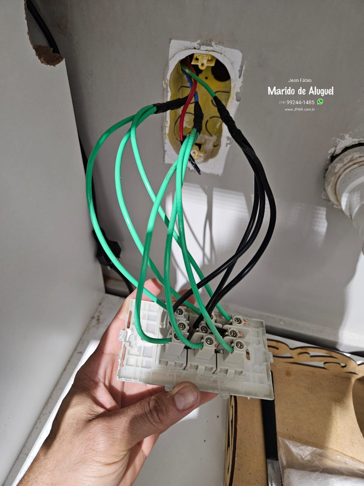 Nesse local, já existiam tomadas instaladas, porém duas delas derreteram devido à sobrecarga elétrica. Ao analisar a instalação, identifiquei que o problema estava na forma como a fiação havia sido feita anteriormente. Foi utilizada uma única alimentação para três tomadas, o que causava excesso de corrente e, consequentemente, o superaquecimento. Expliquei para a cliente que, em pontos onde são ligados equipamentos de alta amperagem, como micro-ondas, cafeteira e air fryer, a instalação precisa ser feita de forma independente, garantindo segurança e bom funcionamento. Refiz toda a parte elétrica, passando um trio de fios para cada tomada — fase, neutro e terra —, deixando cada ponto com sua alimentação individual, eliminando o risco de sobrecarga. Também instalei tomadas de 20 amperes, adequadas para esse tipo de equipamento. Após a correção, tudo ficou seguro, bem dimensionado e dentro das normas, evitando aquecimento, derretimento e possíveis acidentes.
