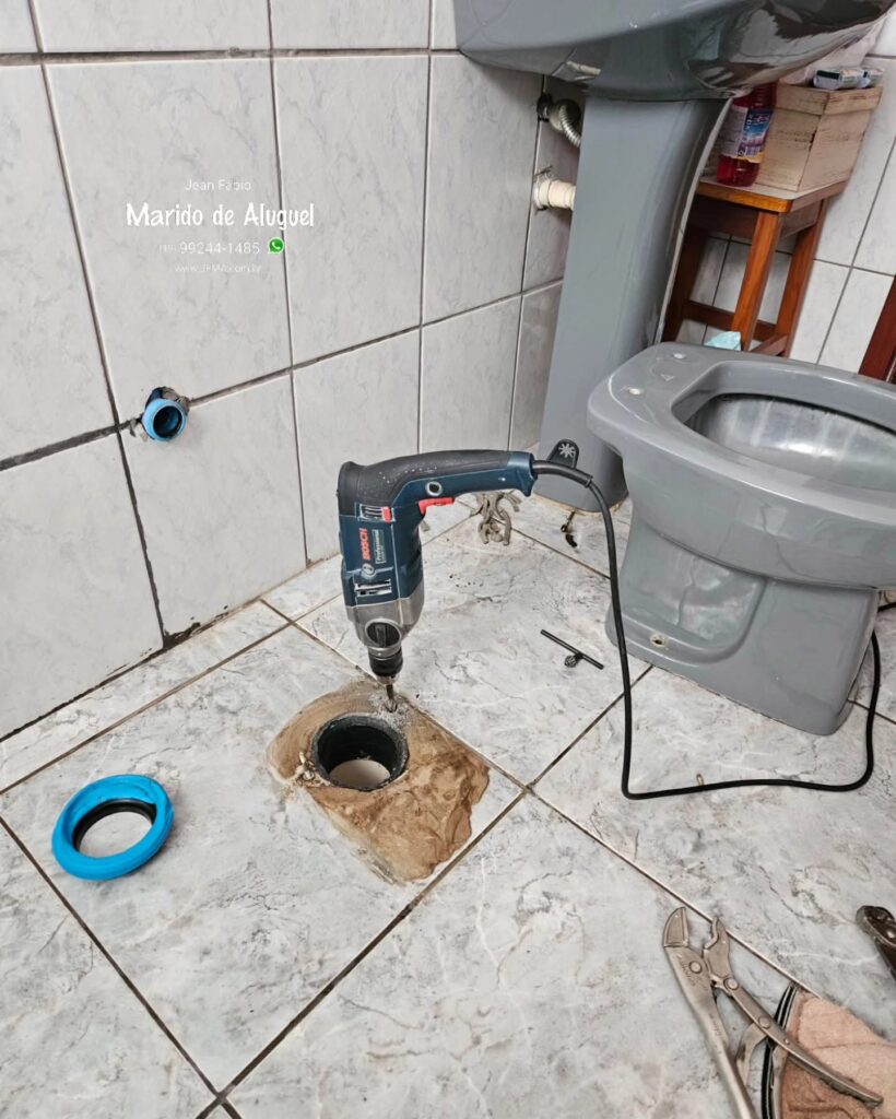 A cliente me chamou porque o vaso sanitário estava vazando água pelo tubo de ligação. Antes de trocar o tubo, sempre verifico se o vaso está firme — e nesse caso, ele estava solto no chão, o que causava o vazamento.