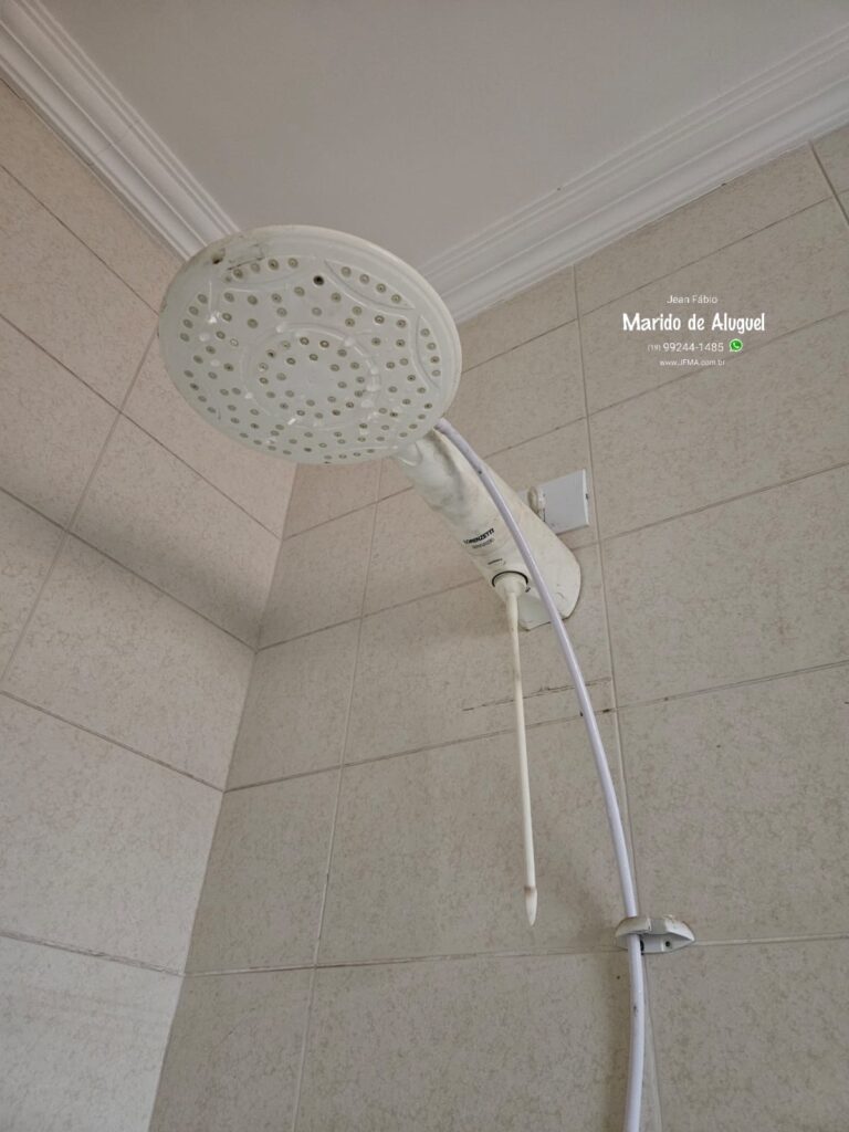 Aproveitando que eu já estava no local, a cliente também pediu a substituição do chuveiro. Fiz a instalação do novo chuveiro no mesmo banheiro, deixando tudo pronto e funcionando.