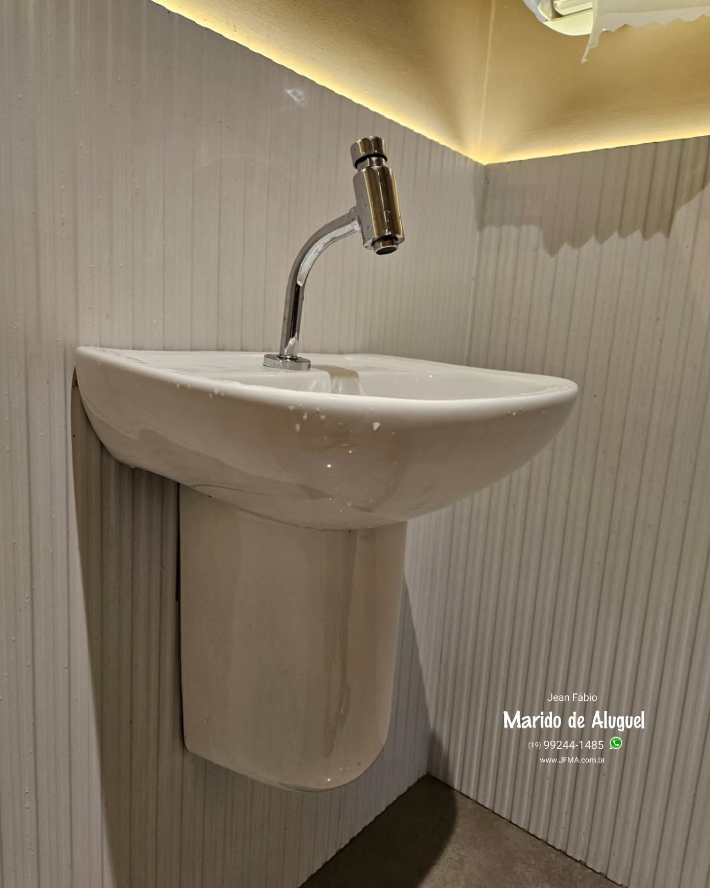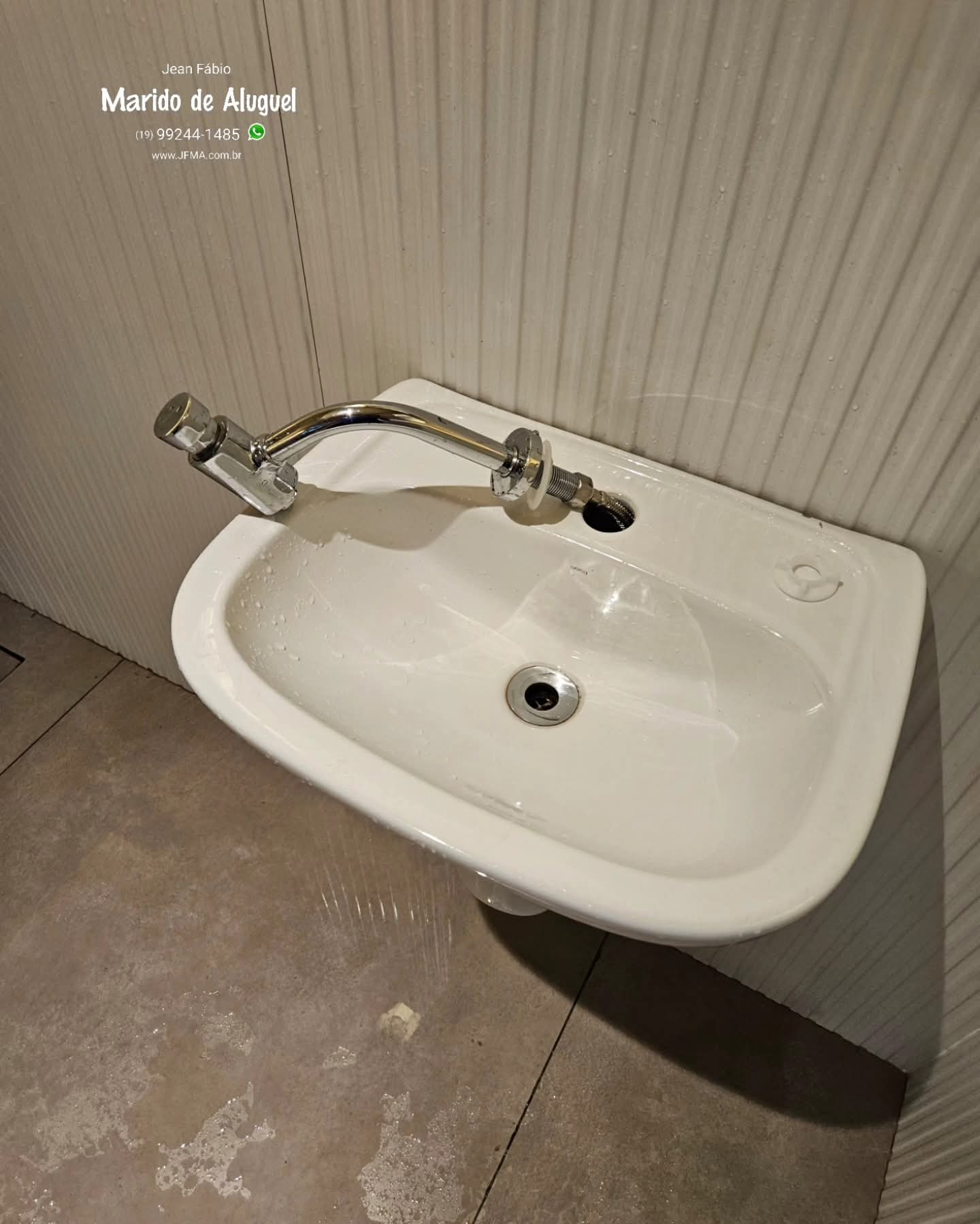 Nessa sorveteria no centro de Americana, fui chamado porque a torneira tinha soltado e caído, dando a impressão de que estava quebrada. Na verdade, o problema era falta de aperto, mas o acesso era complicado por causa de uma peça de cerâmica instalada na parte de baixo, que impedia fazer o ajuste corretamente. Com isso, além da torneira ficar solta, começou a aparecer um vazamento na mangueira.Pra resolver do jeito certo, precisei remover a peça de cerâmica, fazer o aperto correto da torneira e estancar o vazamento. Depois, montei tudo novamente, reinstalei a cerâmica e deixei a torneira bem fixa, alinhada e funcionando certinho.
