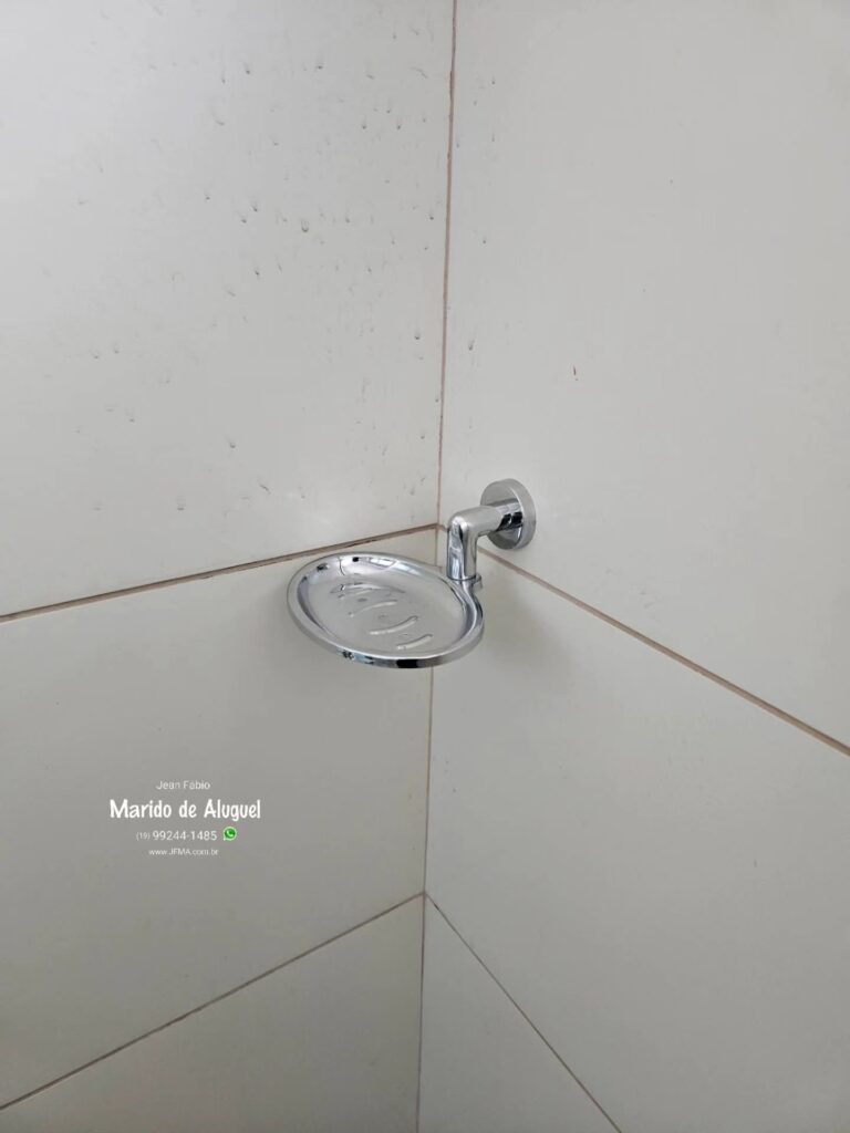 Nesse banheiro, fiz a instalação completa do kit de acessórios.