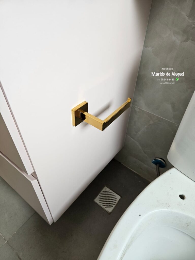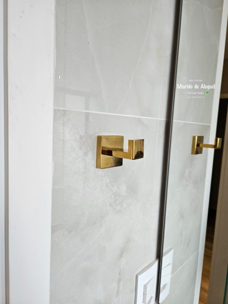 Instalação Completa de kit de ferragens Douradas em banheiro.