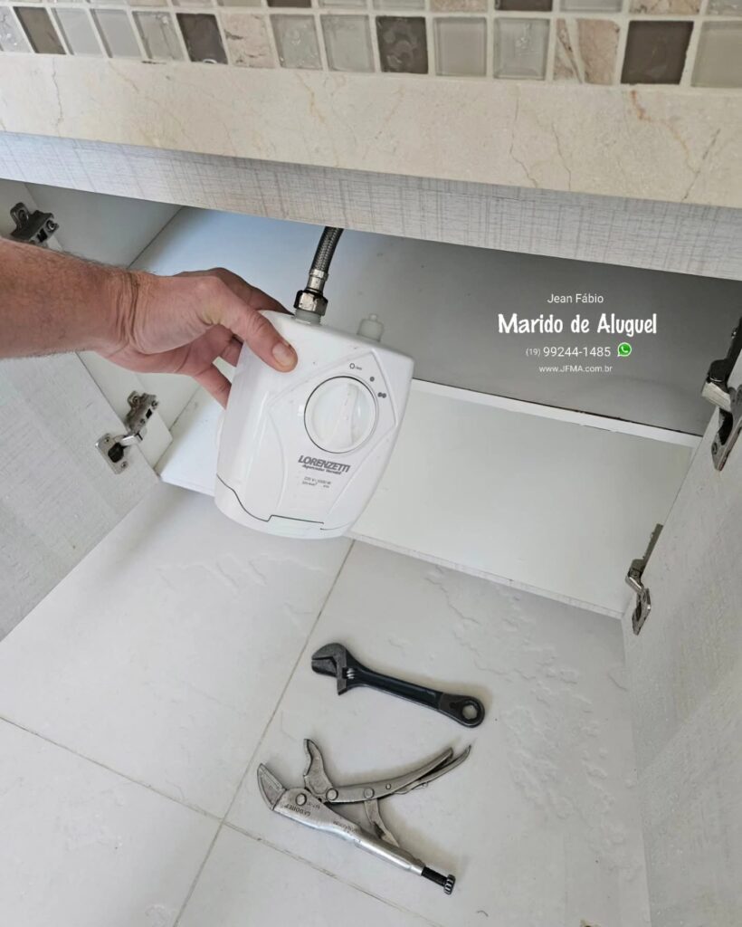 Tudo ficou certinho e funcionando perfeitamente. Agora a torneira tem água quentinha, do jeito que o cliente queria!
