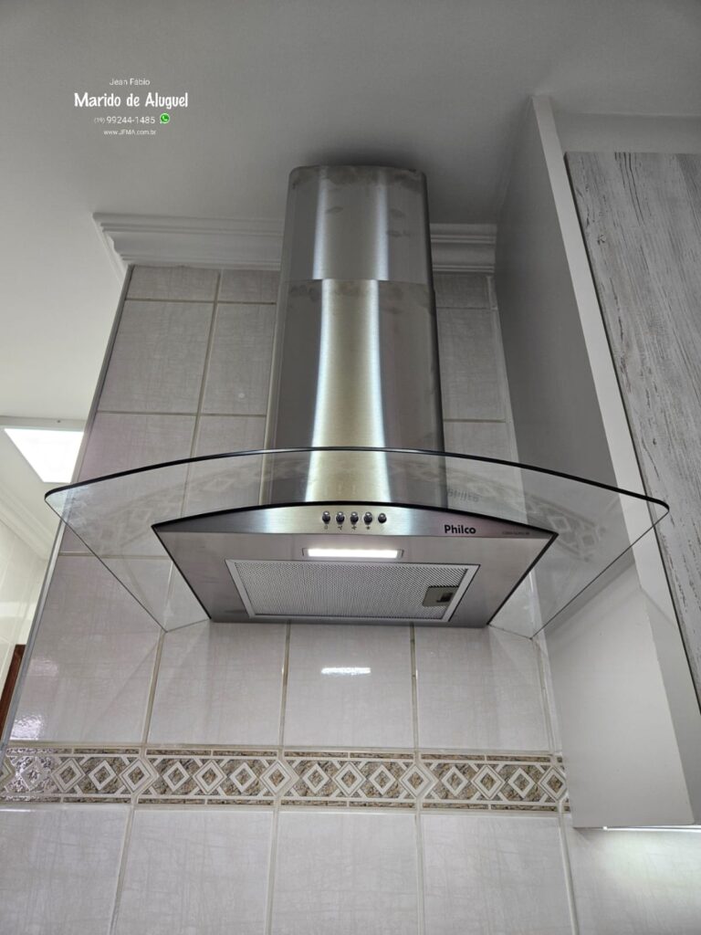 Nesse serviço, fui chamado para fazer a instalação de uma coifa de parede da marca Philco, trazendo mais funcionalidade e um visual moderno pra cozinha.
