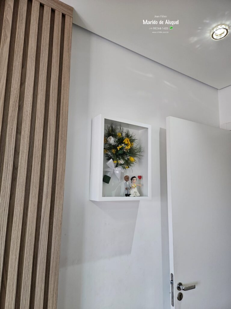 Aproveitando o serviço, o cliente também pediu a instalação de um quadro no quarto. Fiz a fixação na parede com todo o cuidado, deixando bem alinhado, firme e com um ótimo acabamento.