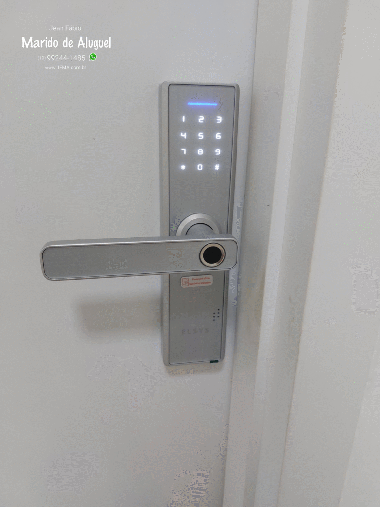 Instalei uma fechadura digital de embutir da marca ELSYS, um modelo moderno que traz mais praticidade e segurança para o ambiente. Fiz toda a fixação, alinhamento e testes de funcionamento para garantir que o sistema abrisse e travasse perfeitamente.