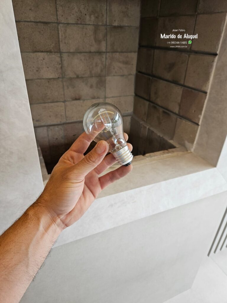 Além disso, utilizei uma lâmpada incandescente de vidro, que é mais adequada para esse tipo de ambiente. Diferente das lâmpadas de LED com estrutura plástica, que podem deformar ou derreter com o calor, a incandescente suporta melhor a temperatura da churrasqueira, garantindo mais segurança e durabilidade.
