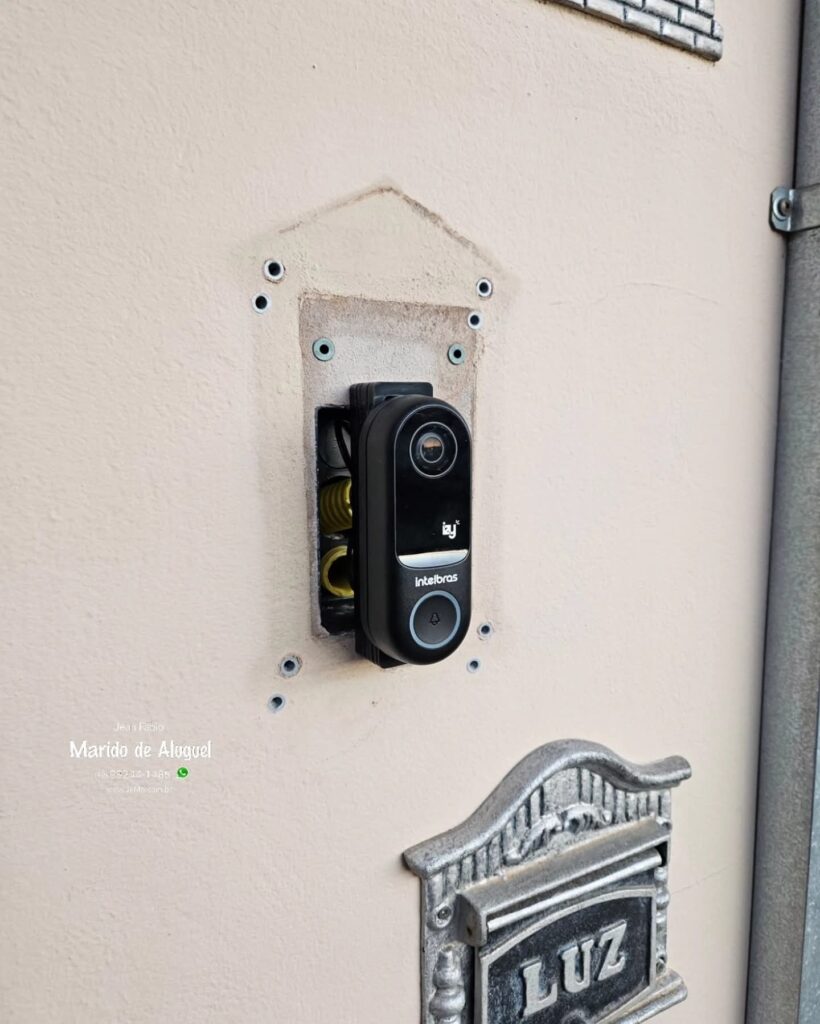 Aqui nessa casa, antes tinha um interfone convencional da HDL, daquele modelo simples que você aperta a campainha e toca só dentro da residência. Fiz a retirada desse interfone antigo e instalei um interfone inteligente Wi-Fi da marca Intelbras, que permite atender tanto pelo interfone interno quanto diretamente pelo celular, via internet. Esse sistema conta com um módulo que faz parte do próprio interfone, responsável por integrar o interfone ao portão eletrônico basculante. Com isso, além de atender a chamada de qualquer lugar, o morador também consegue abrir e fechar o portão pelo celular, usando o mesmo aplicativo do interfone.