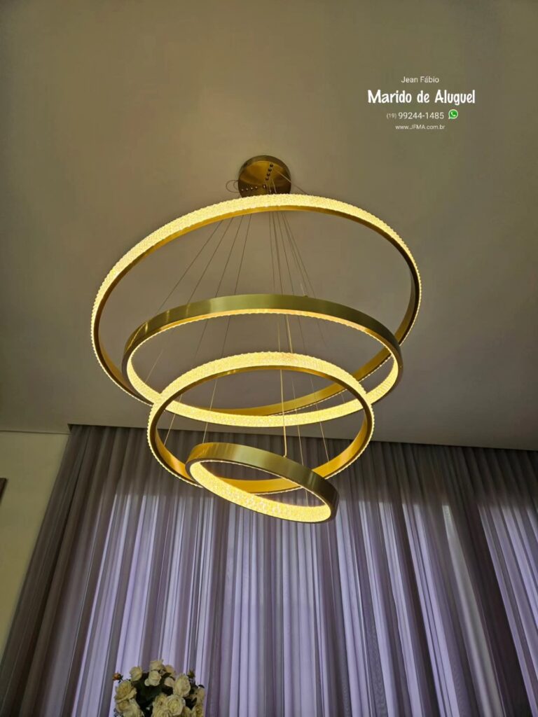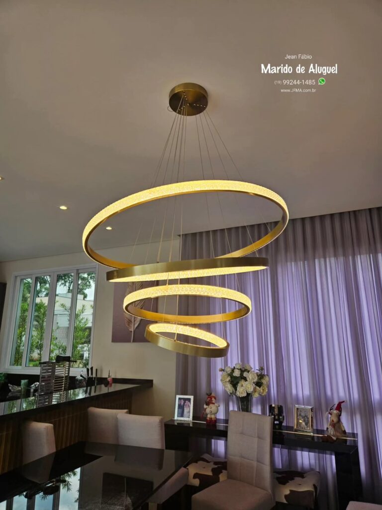 Instalação de Lustre com 3 Argolas de LED na Sala de Jantar