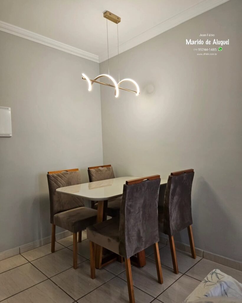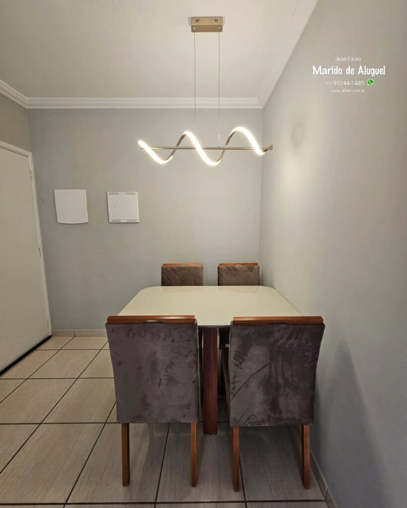 Por fim, instalei o pendente de LED no centro exato da mesa. O resultado ficou moderno, alinhado e trouxe muito mais harmonia para o ambiente.