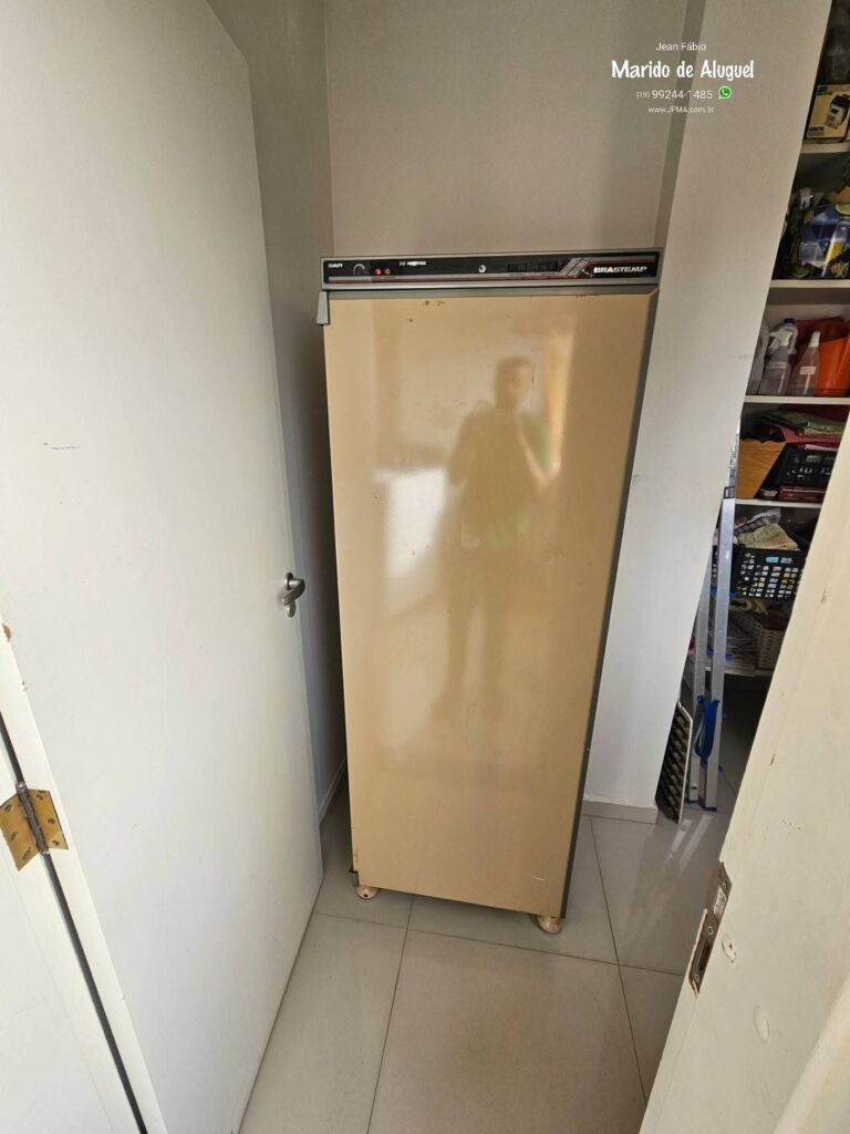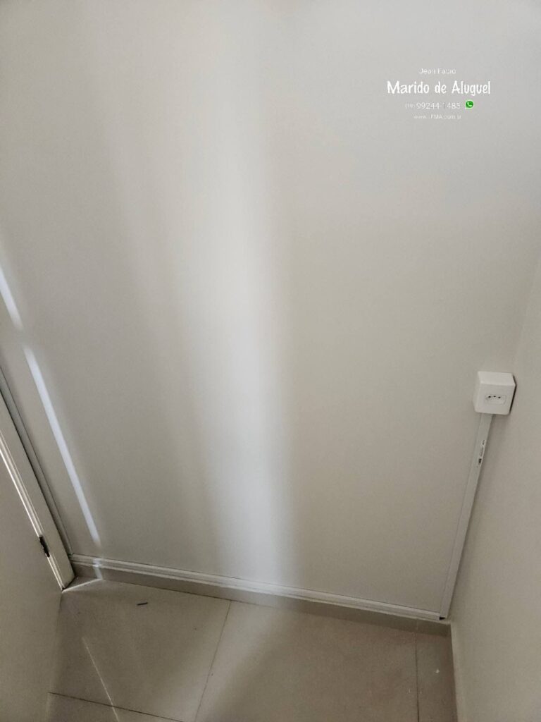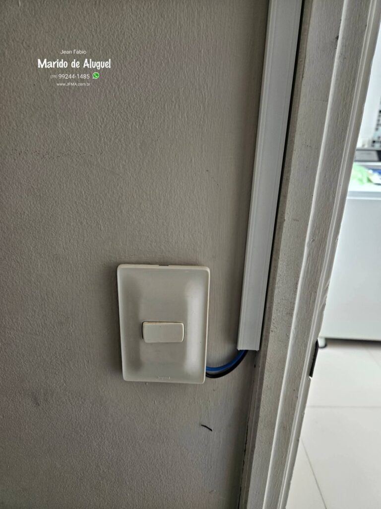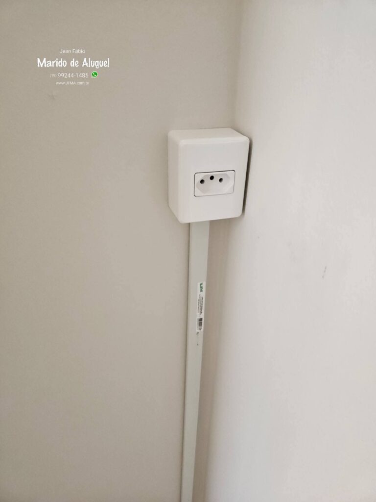 Nesse apartamento, a cliente queria posicionar a geladeira em um local onde não havia tomada disponível. Para resolver, puxei um ponto de energia através de canaletas de pvc, e instalei uma tomada de sobrepor de 127 volts atrás do eletrodoméstico.