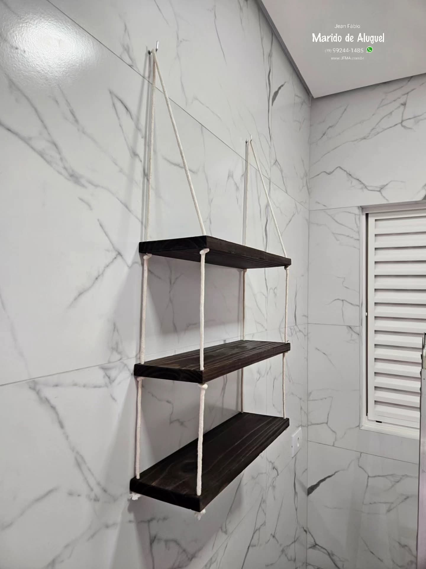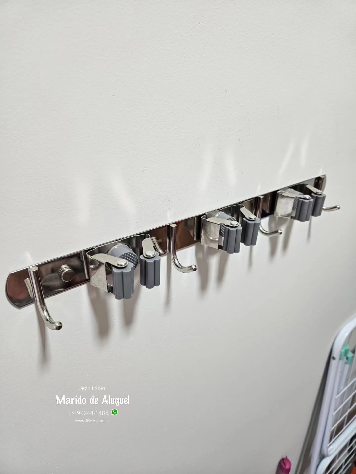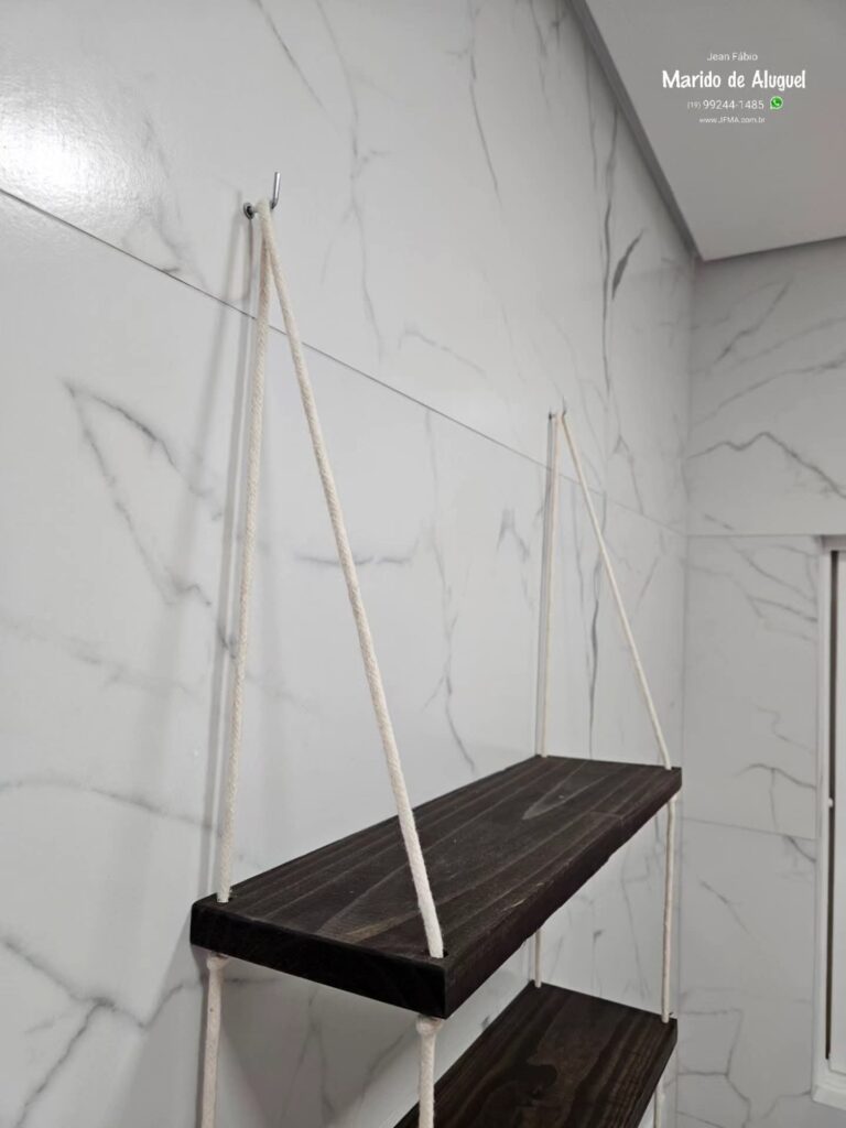 Instalação de Prateleira Suspensa, Luminária Externa e Porta-Vassoura.