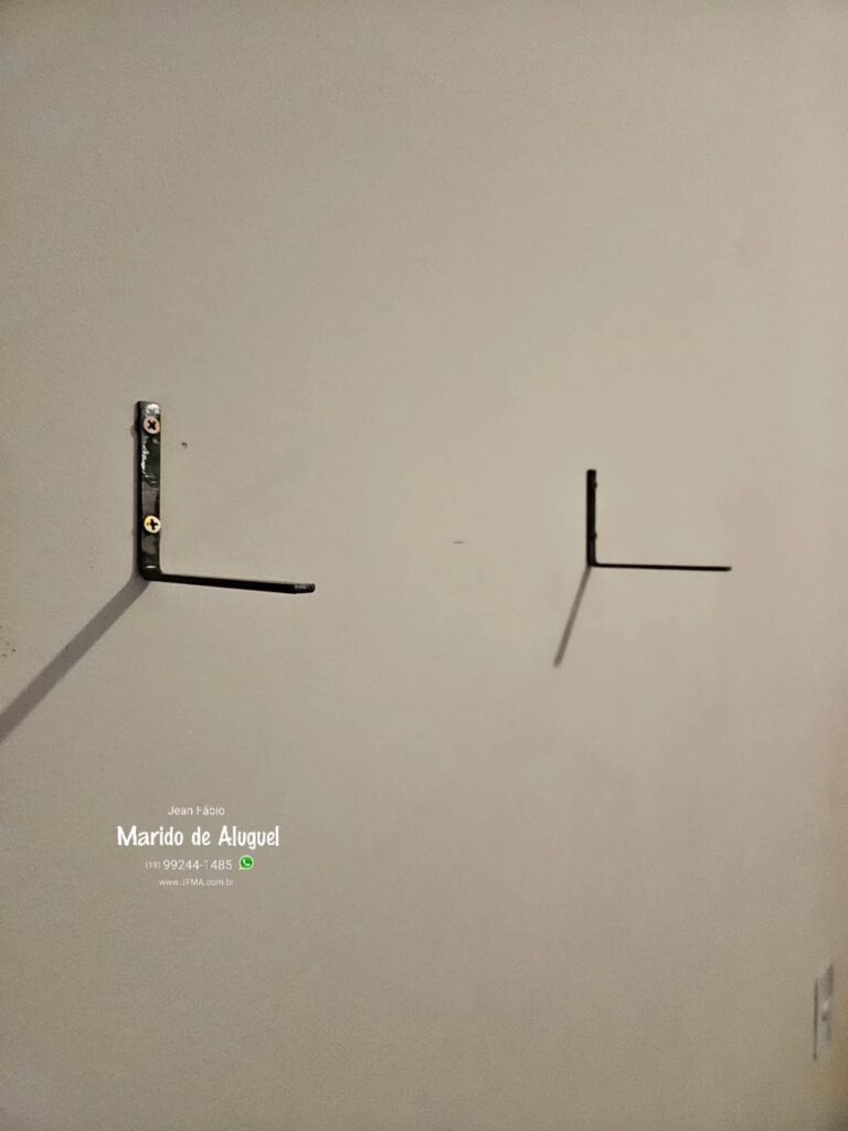 Elas são fixadas com suporte invisível, que funciona com pinos metálicos embutidos na parede. Fiz toda a marcação com cuidado, conferi nível, furação correta e fixação firme para garantir que as prateleiras ficassem bem travadas e seguras.