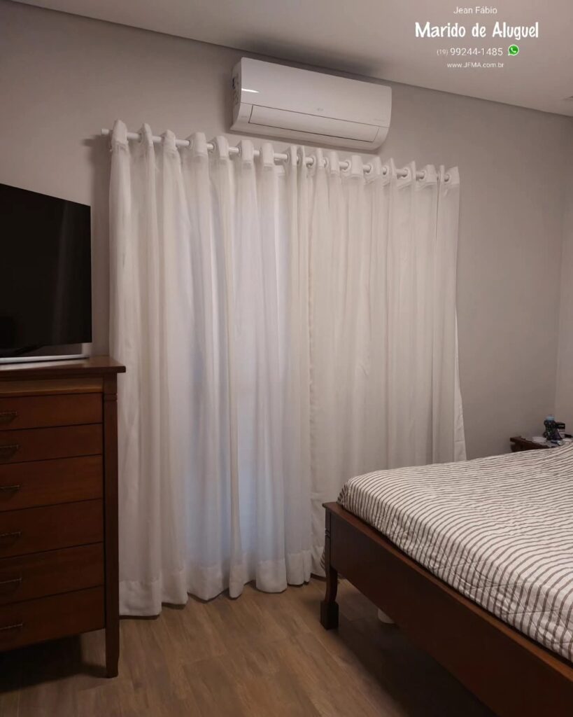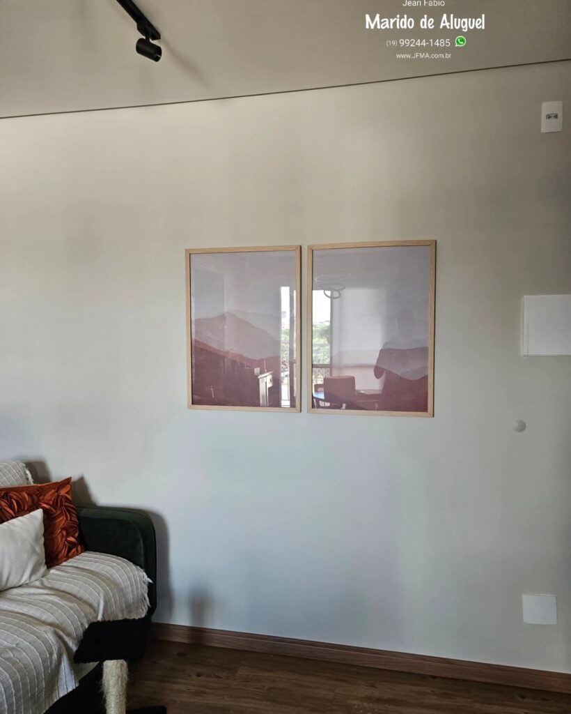 Nesse atendimento realizei a instalação de dois quadros decorativos na sala, fazendo a marcação correta para garantir alinhamento, nivelamento e um acabamento bonito na parede. Além disso, também fiz a instalação da cortina, com fixação firme do varão, bom caimento do tecido e um resultado esteticamente agradável. Pequenos detalhes que fazem toda a diferença!🤩