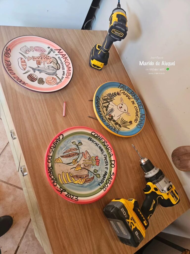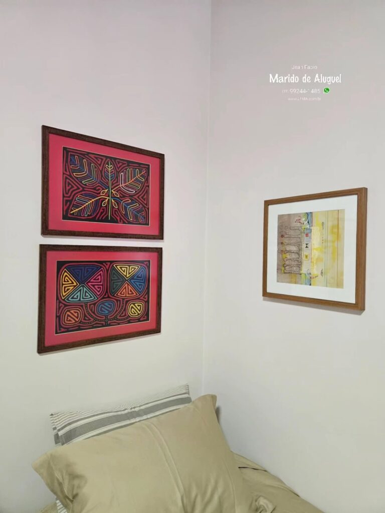 Nessa casa eu fiz a instalação de vários quadros na parede, em diversos cômodos.