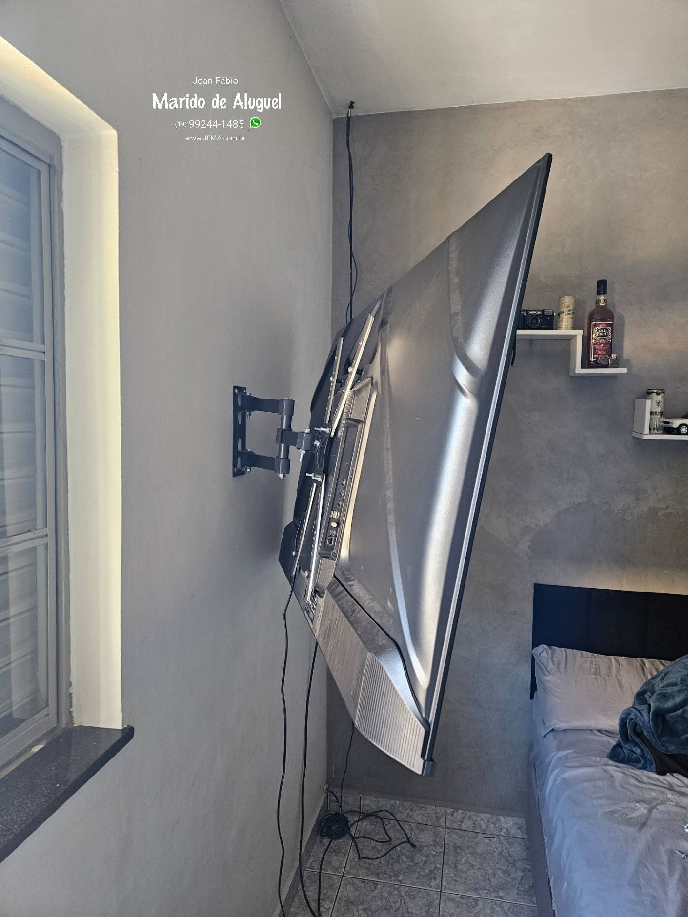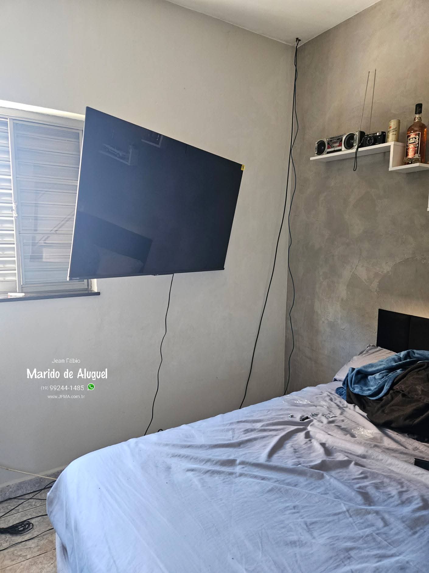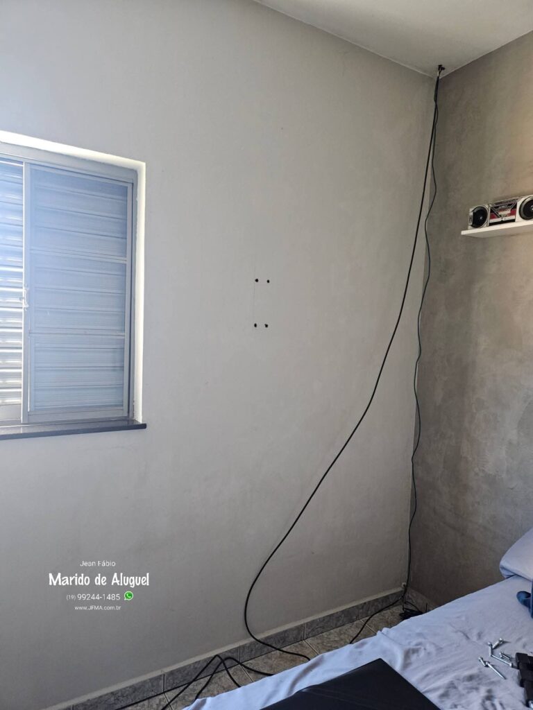 Fiz a instalação desse suporte articulado para a cliente que desejava a tv no quarto.Repare que a TV com suporte fixo fica bem na lateral da cama, totalmente desconfortável para assistir. A solução foi instalar esse suporte de tv articulado que possibilita mover a TV mais para o centro, garantindo a melhor visão e conforto na hora de assistir. E quando a TV não esta em uso, pode ser mantida encostada na parede.