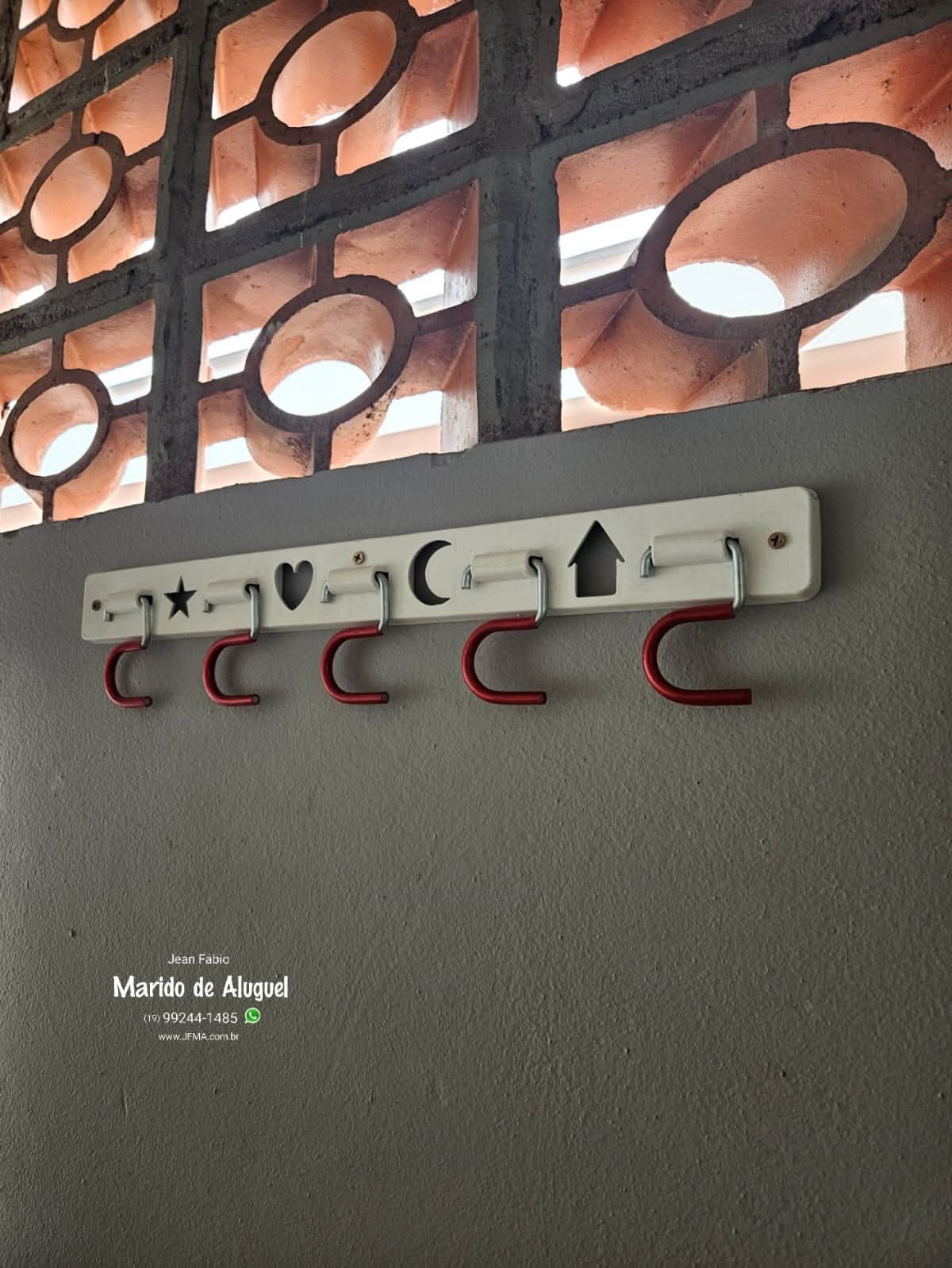 Aproveitando o serviço, ela também pediu para instalar um porta vassoura na parede. Fiz a instalação no ponto ideal para facilitar o uso no dia a dia e deixar o ambiente mais organizado.