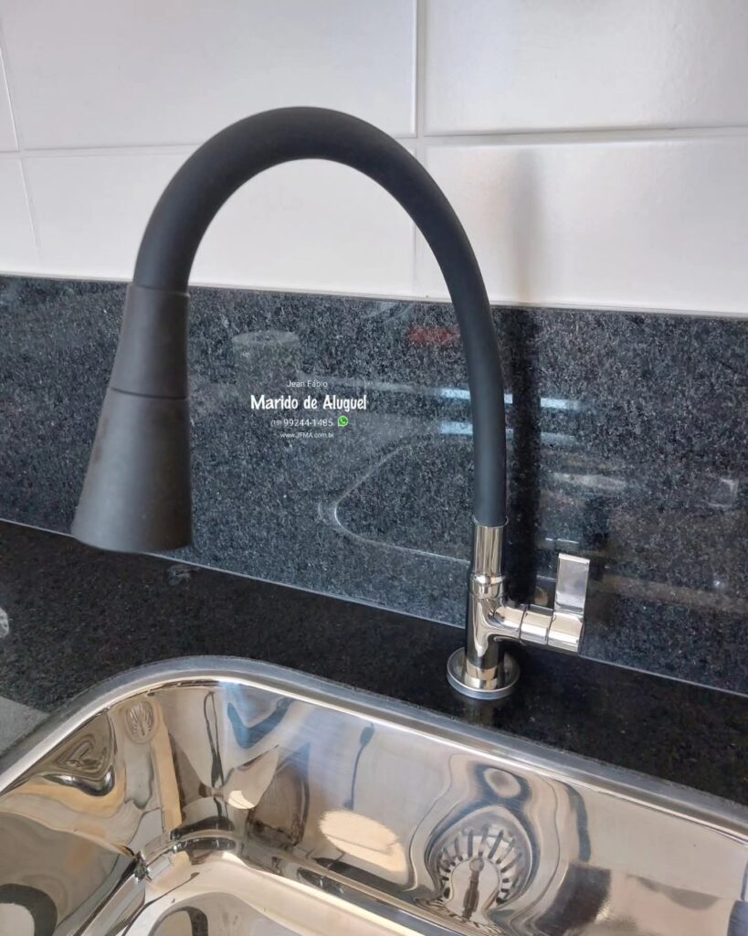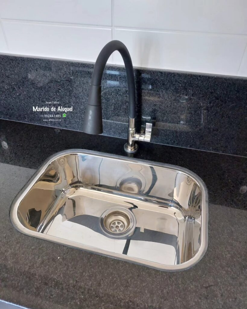 Neste serviço, fiz a instalação de uma torneira de mesa, que é fixada diretamente na pedra da pia.