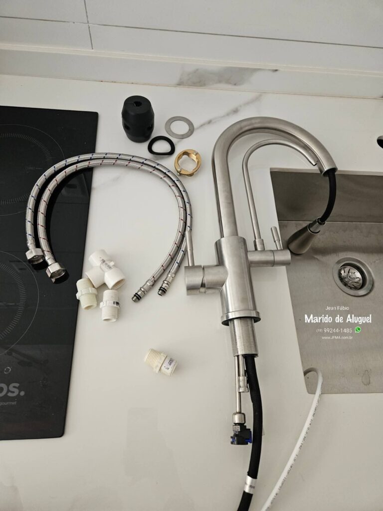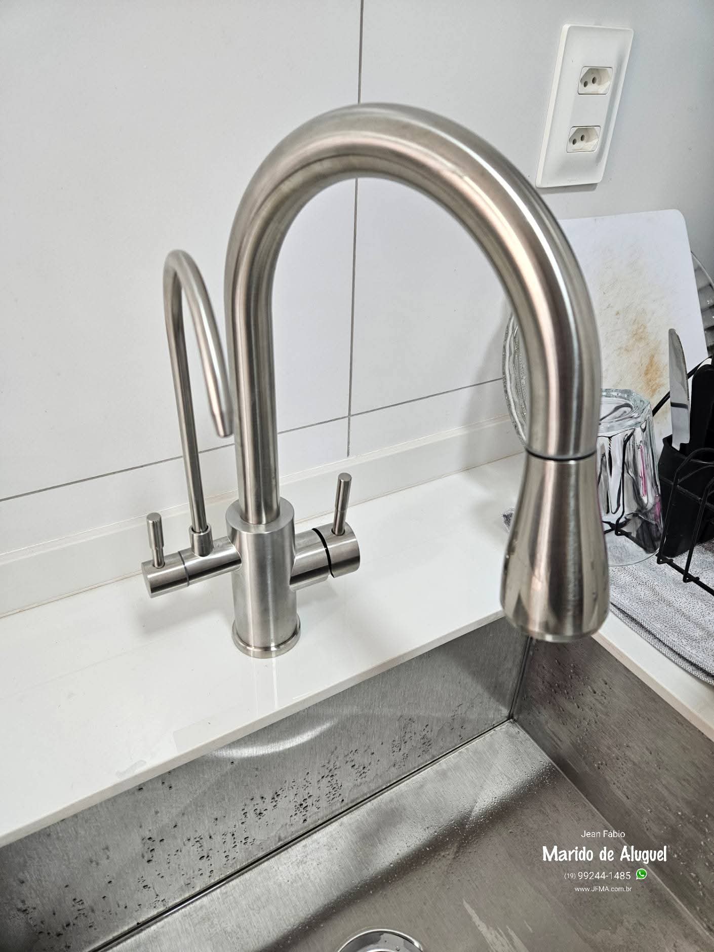 Nesse serviço, instalei uma torneira gourmet com saída para filtro, modelo moderno e super funcional.