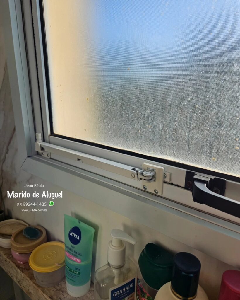 A cliente relatou que a janela do banheiro (modelo basculante) batia com o vento. Instalei uma trava de segurança específica para janela basculante, que mantém a abertura firme no ponto certo e evita o movimento com o vento. Agora ela pode deixar a janela aberta com tranquilidade, sem barulho e com mais segurança!