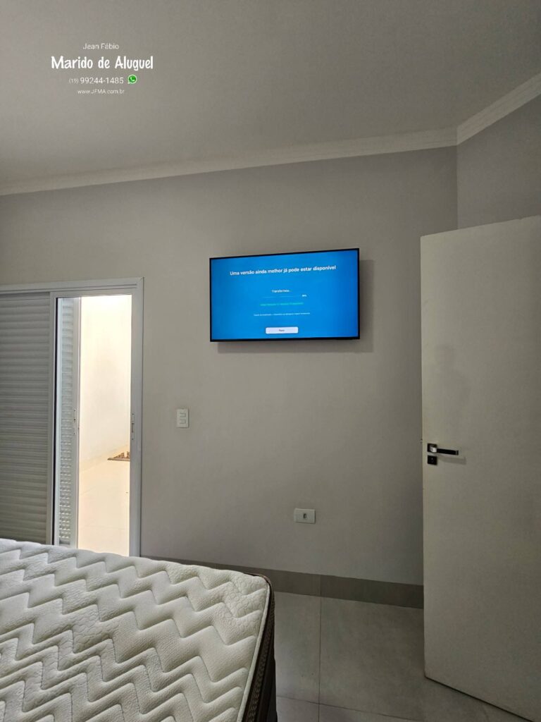 Fiz a instalação de uma nova TV no quarto de um apartamento em Americana. No local já havia uma TV antiga, mas a cliente quis trocar por um modelo maior.