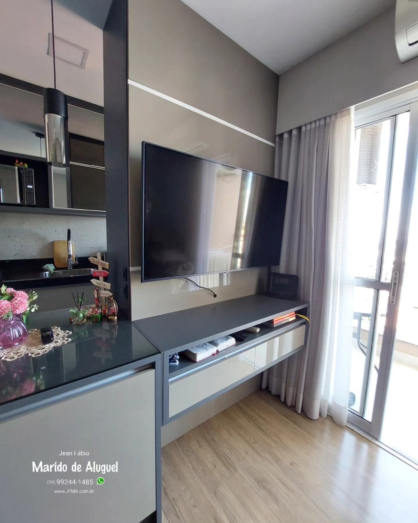 Fiz a instalação de uma televisão usando um suporte articulado, ideal para quem quer ajustar o ângulo da TV conforme a posição de onde estiver assistindo.Primeiro marquei e nivelei os pontos de fixação na parede. Depois instalei o suporte articulado, conferindo todos os encaixes e travas. Em seguida, coloquei a TV no suporte, ajustei a inclinação, testei a movimentação lateral e deixei tudo alinhado certinho.Agora a cliente pode puxar ou inclinar a TV com facilidade, sem perder estabilidade.