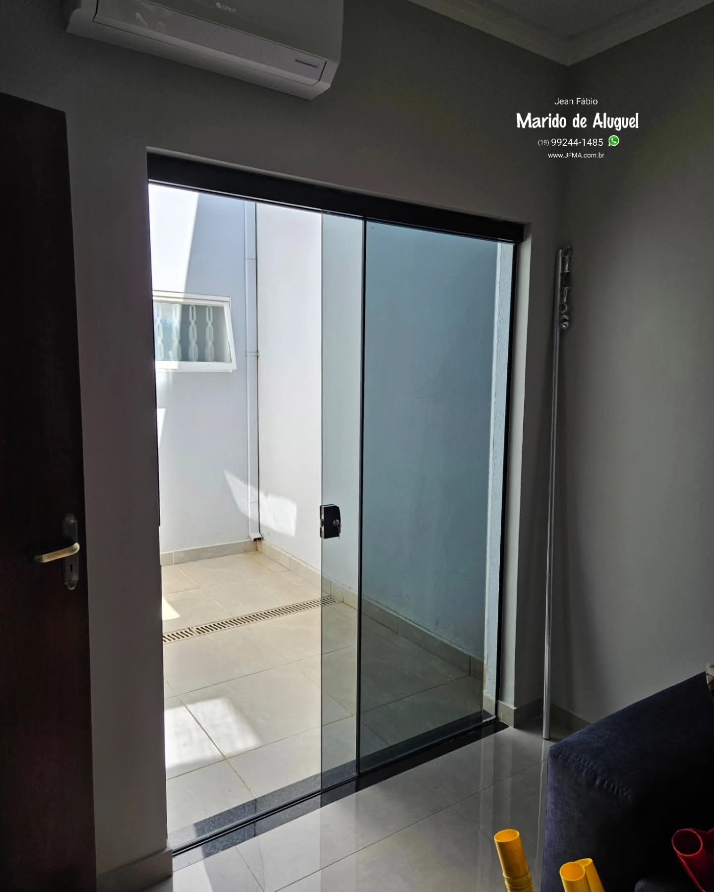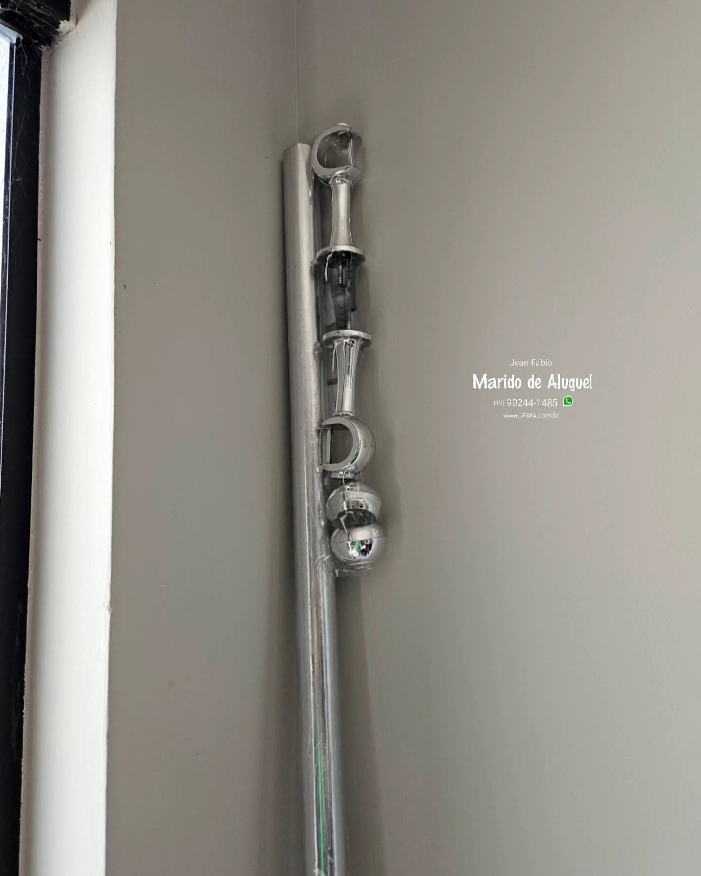 Fui chamado pra instalar um varão de cortina nessa casa, porém a cliente ainda não tinha comprado a cortina. Ela pediu apenas uma coisa: que eu colocasse o varão o mais alto possível, pra valorizar o ambiente. O detalhe é que acima da janela tem uma máquina de ar-condicionado, então havia um limite para subir. Analisei o espaço, respeitei a altura do ar pra não atrapalhar o funcionamento e instalei o varão um pouquinho abaixo do equipamento, aproveitando o máximo de altura disponível. Expliquei pra cliente que, quando ela comprasse a cortina, caso ficasse encostando ou sobrando no chão, seria só ajustar depois com a costureira. Pra ela, o mais importante era deixar o varão bem alto agora, e a cortina seria resolvida posteriormente. Varão instalado com firmeza, bem alinhado e na melhor posição possível.