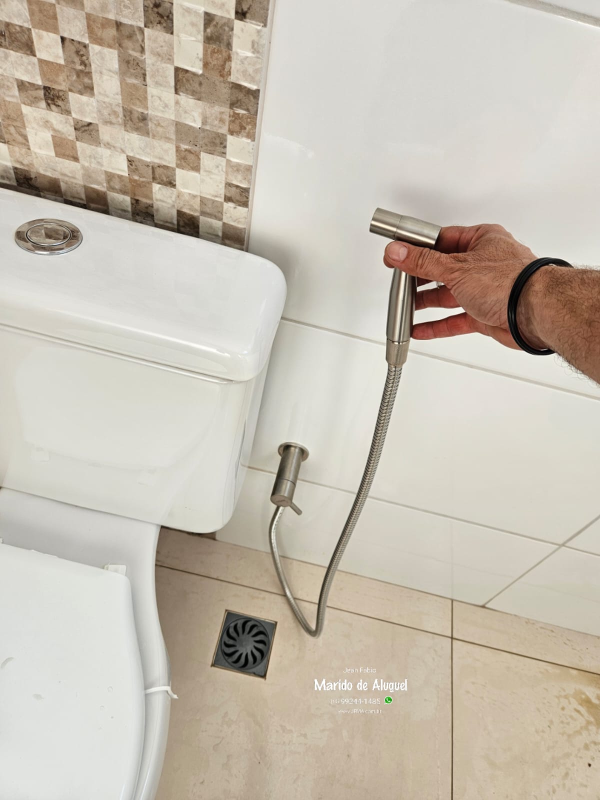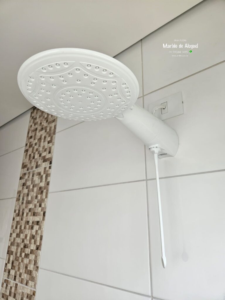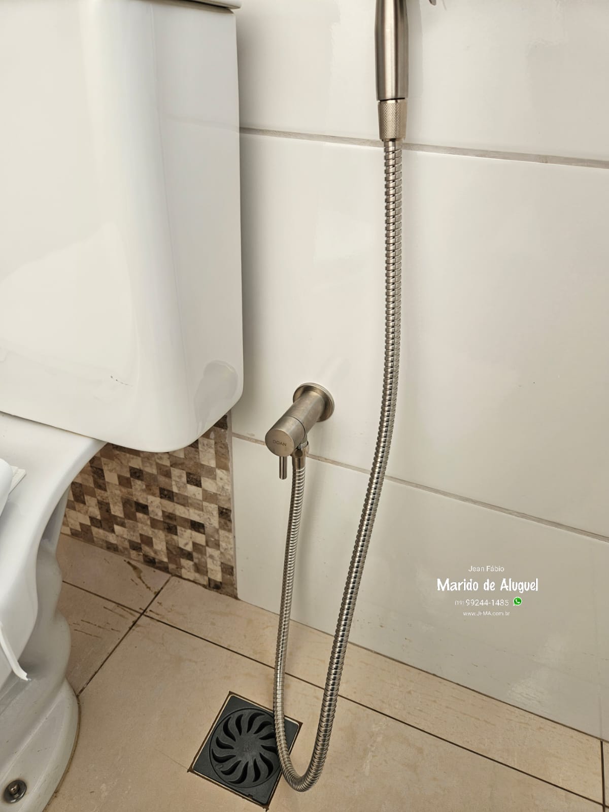 Com o sistema já regularizado, aproveitei pra dar sequência nos outros serviços: fiz a instalação do chuveiro e também da ducha higiênica, deixando tudo funcionando corretamente, sem vazamentos e com acabamento bem feito.