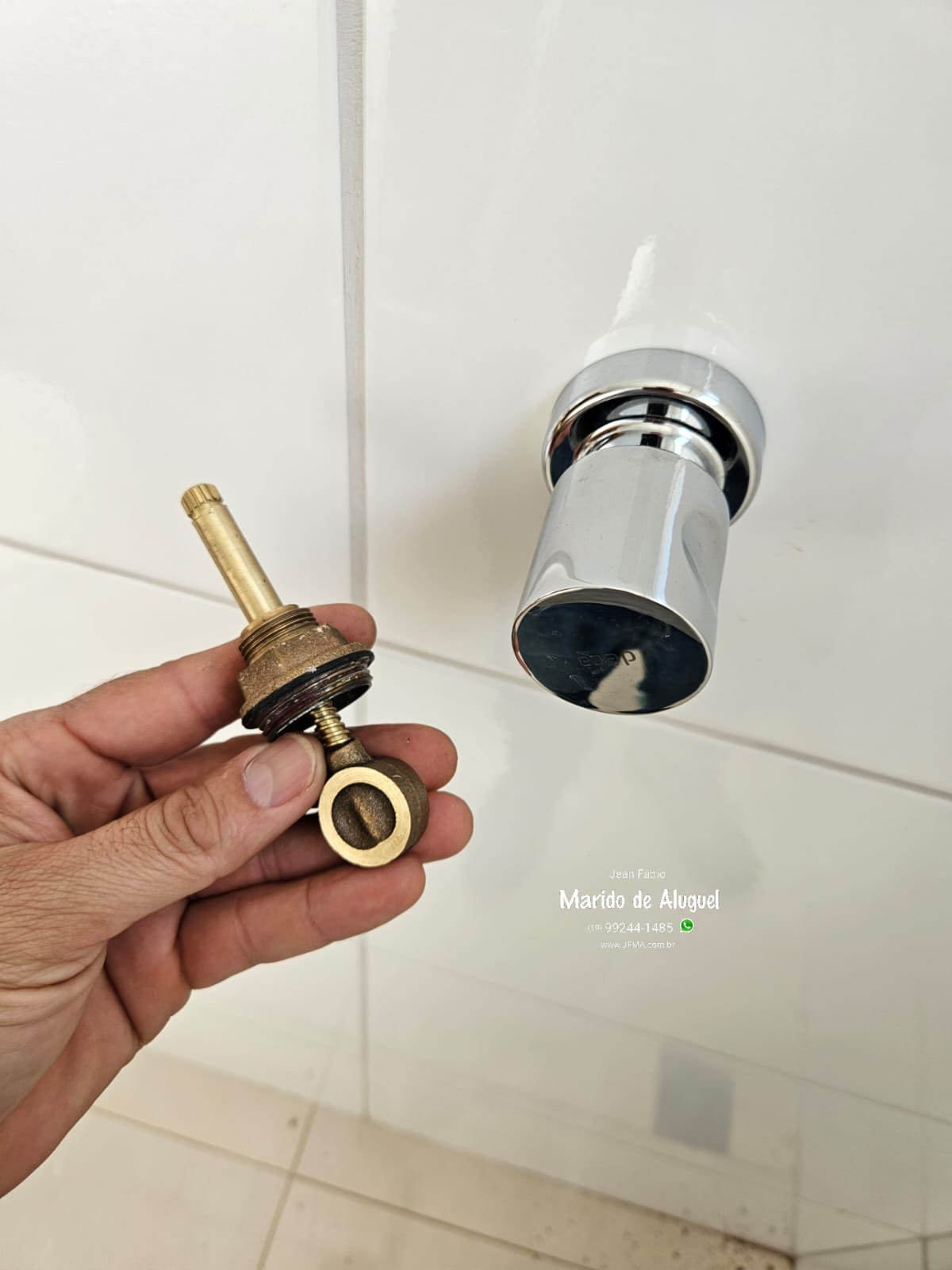 Fiz a desmontagem completa do registro geral do banheiro, identifiquei o problema na peça interna e realizei a substituição da gaveta. Após a manutenção, o registro voltou a funcionar perfeitamente, abrindo e fechando normalmente, sem nenhum travamento.