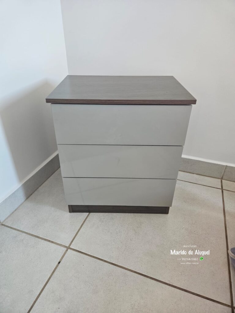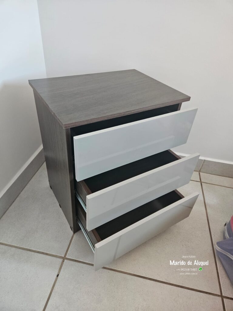 Realizei a montagem de um criado-mudo, deixando o móvel pronto para uso com firmeza e ótimo acabamento.
