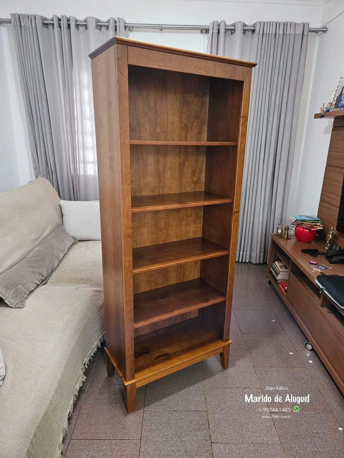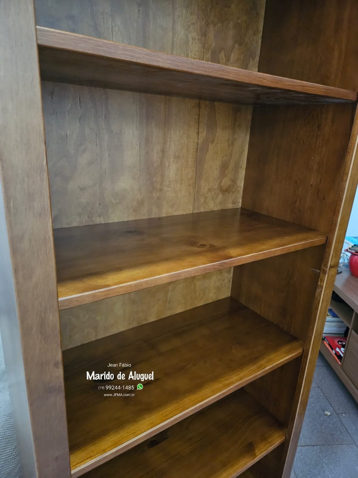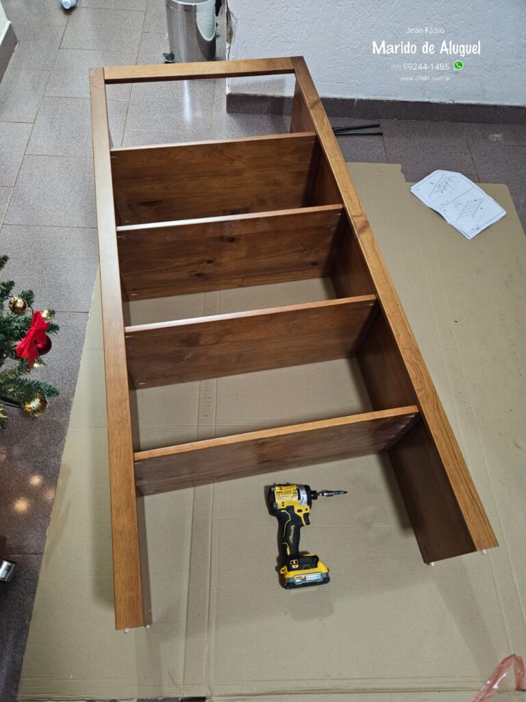 Nesse serviço realizei a montagem completa de uma estante de madeira, ideal para organizar livros e também para acomodar objetos de decoração. Comecei separando todas as peças da estante, conferindo cada parte para garantir que a montagem fosse feita corretamente. Em seguida fiz a estruturação da base e das laterais, fixando tudo com firmeza para que a estante ficasse bem estável e segura. Depois instalei as prateleiras, alinhando e apertando todos os parafusos para garantir que cada divisão suportasse bem o peso dos livros e objetos decorativos. Ao final, a estante ficou bem firme, nivelada e pronta para uso, trazendo mais organização e um toque bonito de madeira para o ambiente.