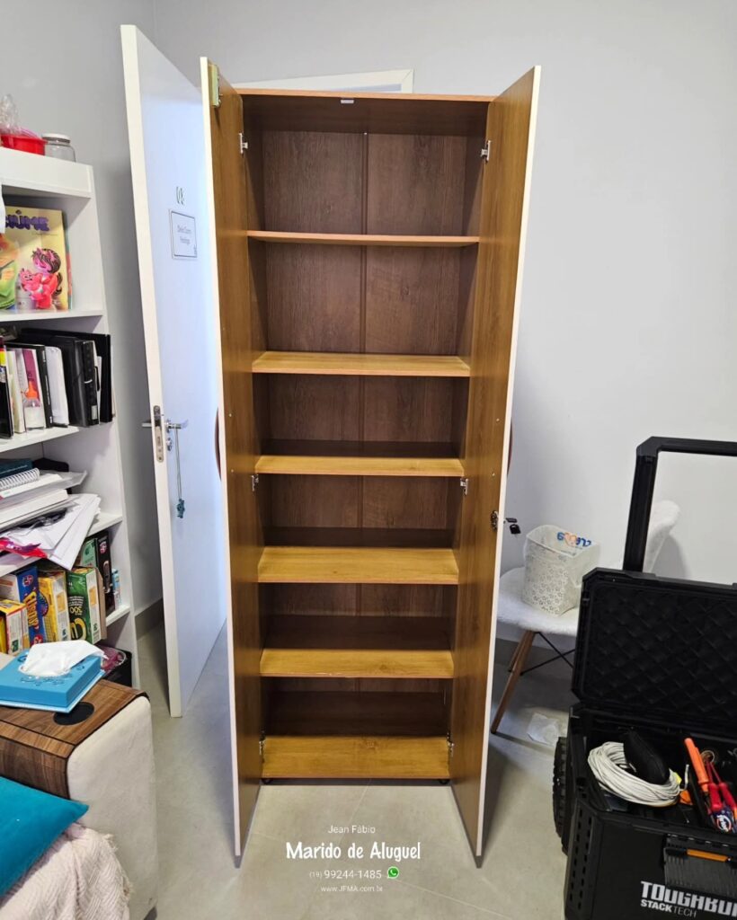 Aqui é uma sala de uma escola particular, no Jardim São Pedro. Nesse serviço, fiz a montagem de um armarinho de duas portas, deixando ele bem firme e pronto pro uso do dia a dia. Também fiz a montagem de uma mesa estilo industrial, seguindo todo o processo certinho pra garantir estabilidade, resistência e um bom acabamento. Tudo foi montado com atenção aos detalhes, conferindo encaixes, apertos e nivelamento.