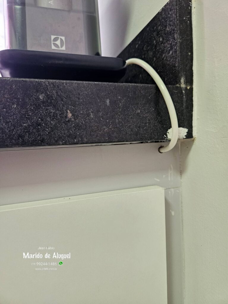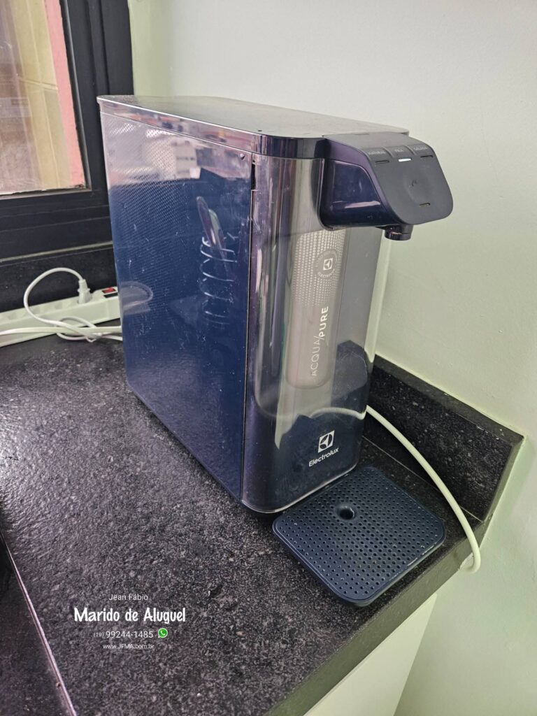 Por ultimo, na cozinha, instalei o filtro de agua da marca Electrolux. Tomei o cuidado de deixar a mangueira bem escondida abrindo um pequeno buraco no movel para manter tudo dentro do armário.