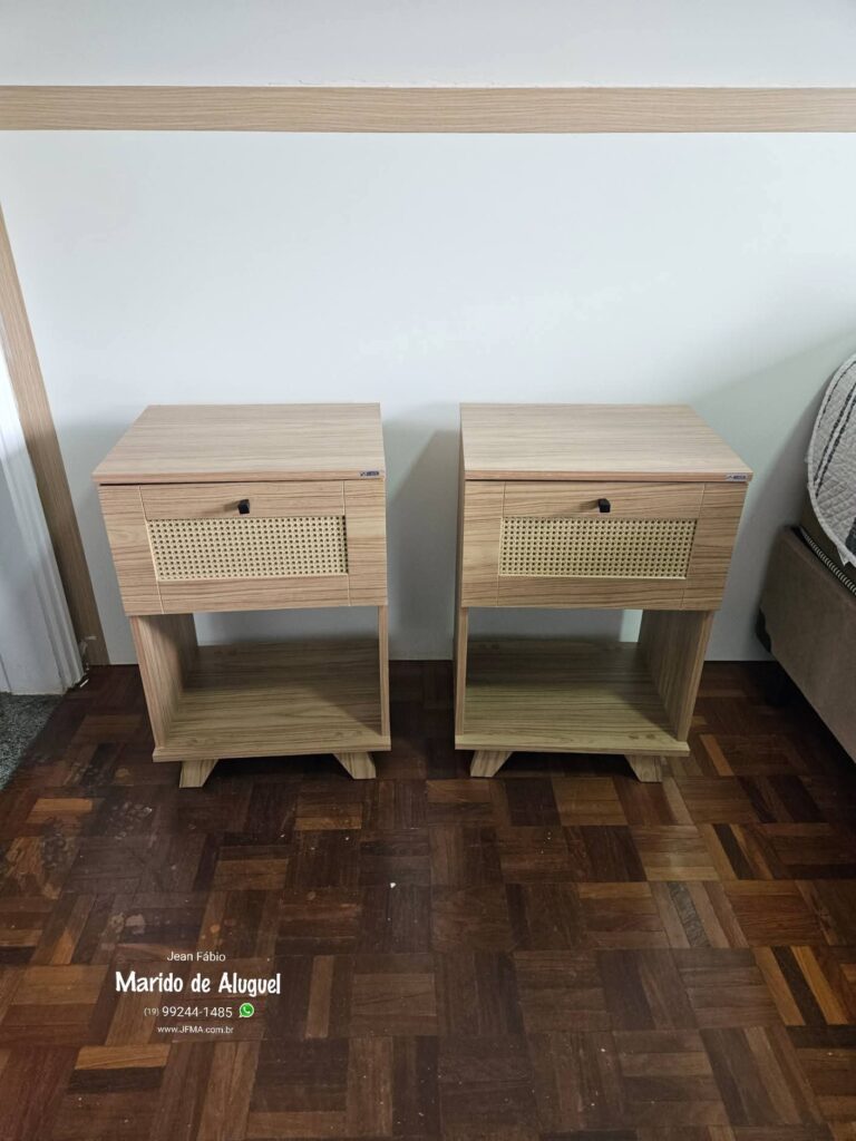 Depois, no quarto, fiz a montagem de dois criados-mudos, ajustando cada detalhe para garantir um acabamento impecável.