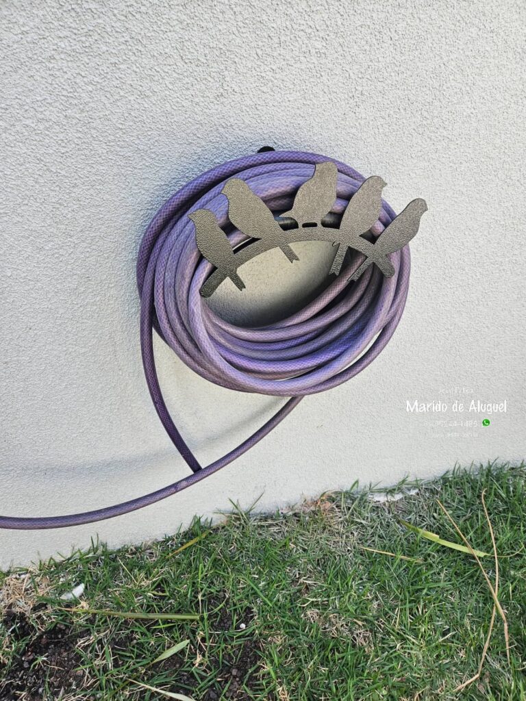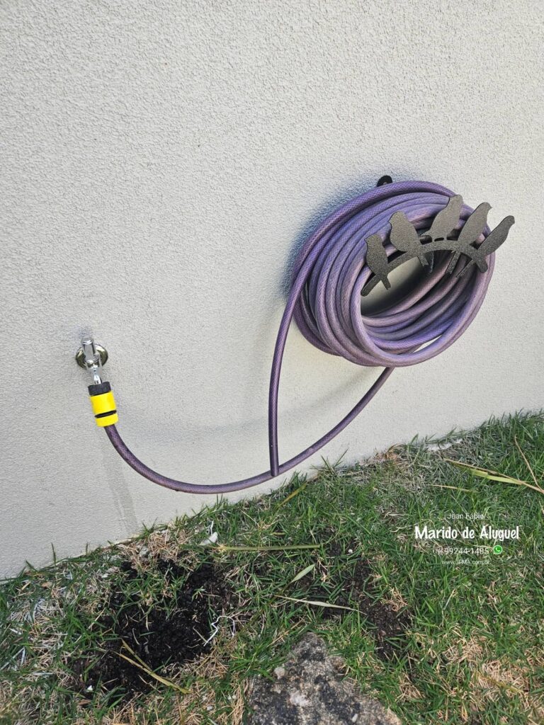 Instalei tudo direitinho, deixei a mangueira enroladinha no suporte e já pronta pra uso. Ficou prático e organizado!