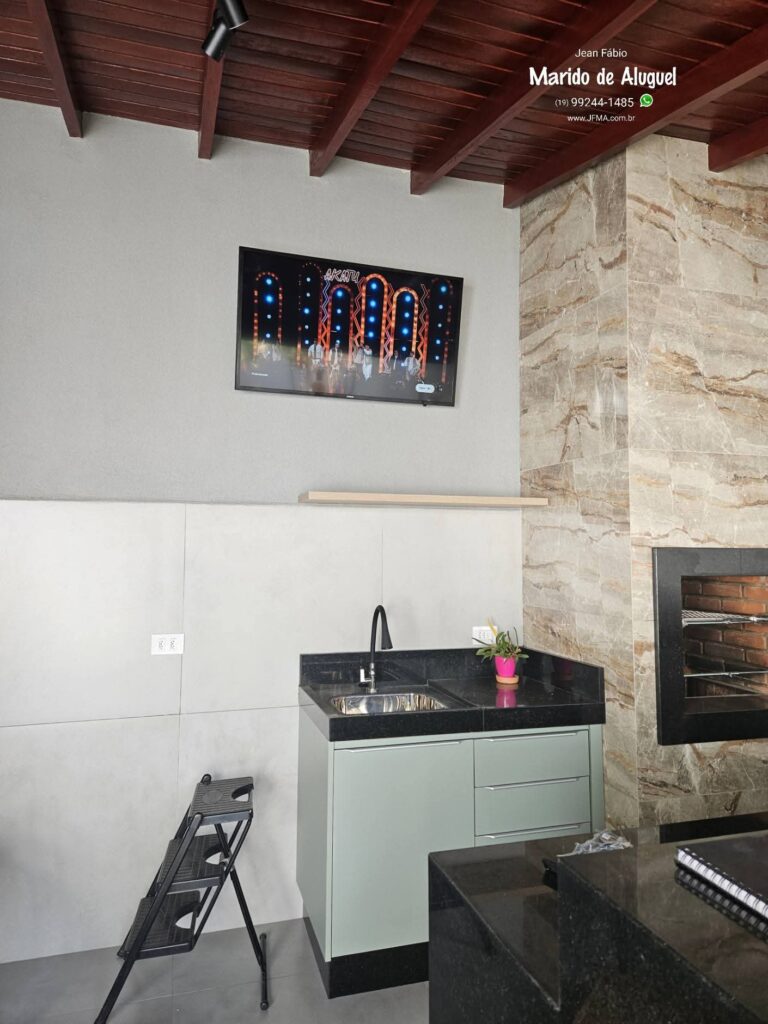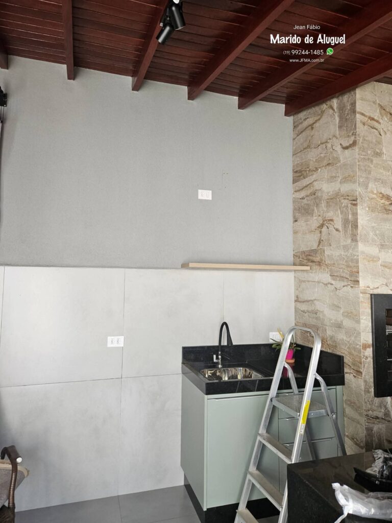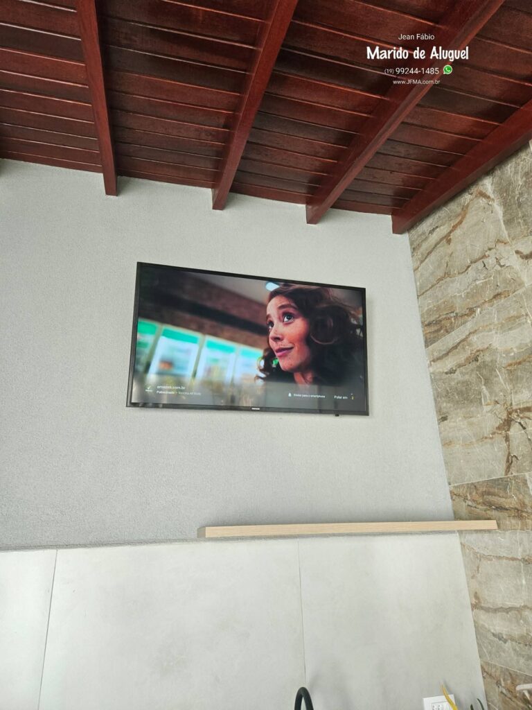 E além desse serviço, eu também instalei uma televisão bem no alto, na área de churrasco da casa.