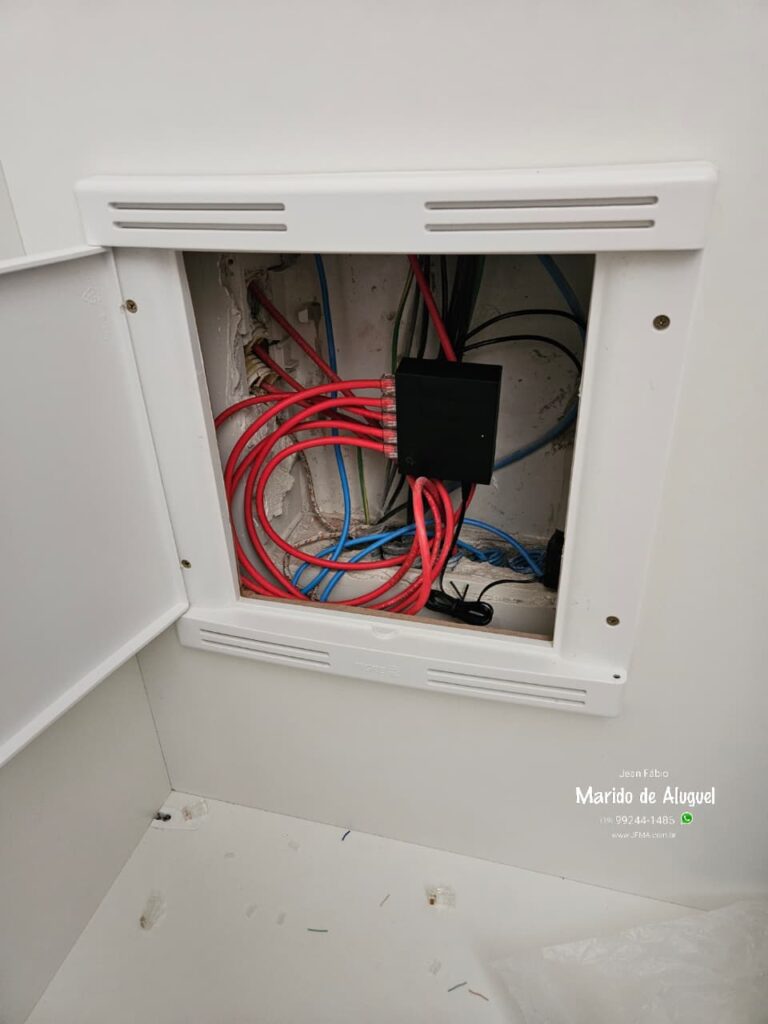 Nesse serviço, com os cabos ja devidamente passados nos conduites, organizei e crimpei os conectores rj45 em toda a rede de internet cabeada de um sobrado. No pavimento térreo, instalei o modem dentro da caixa de passagem. Para isso, precisei instalar uma tomada exclusiva para alimentar o equipamento.